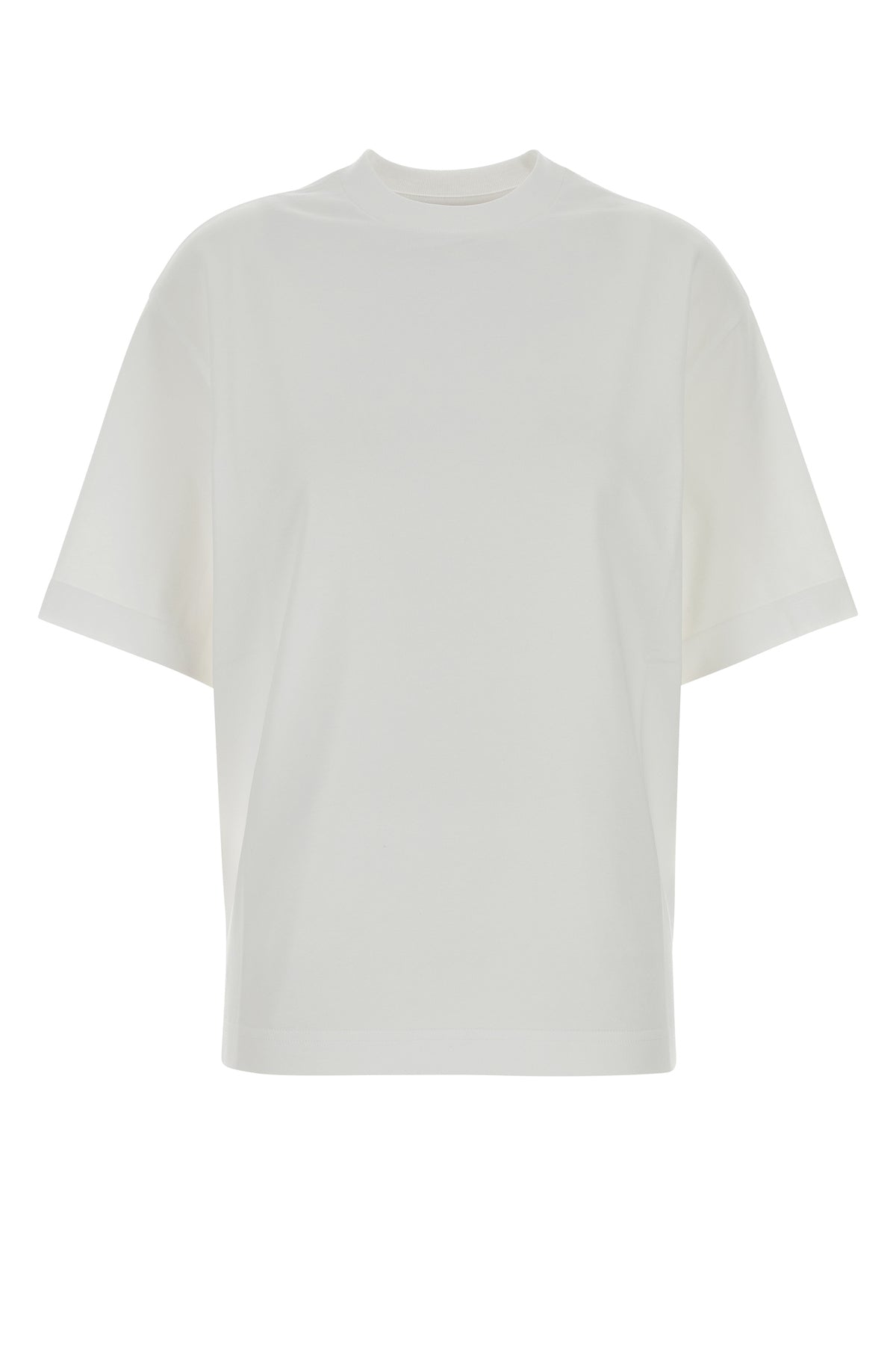T-shirt realized in pure cotton characterized by contrasting logoed embroidery at the back.