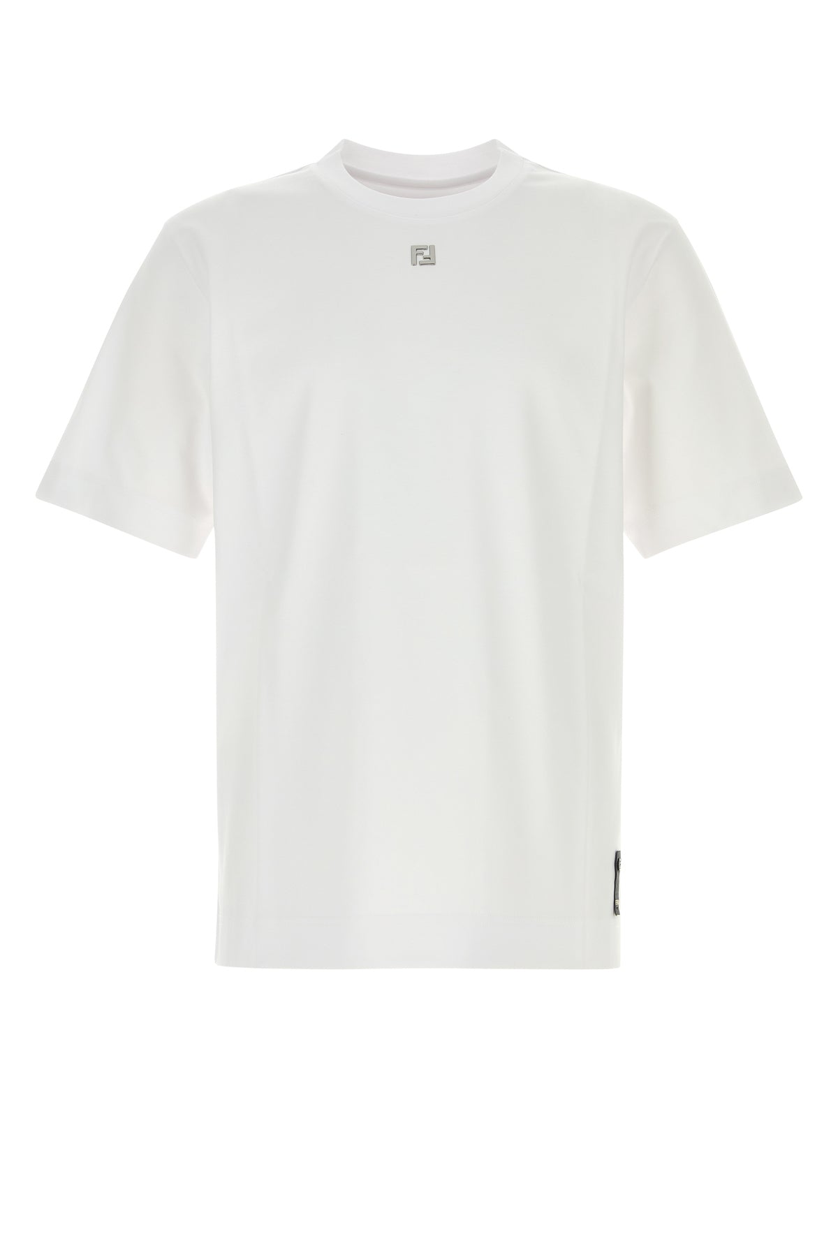 T-shirt realized in pure cotton enriched by metal FF detail on the chest and Fendi Roma label on the hemline.