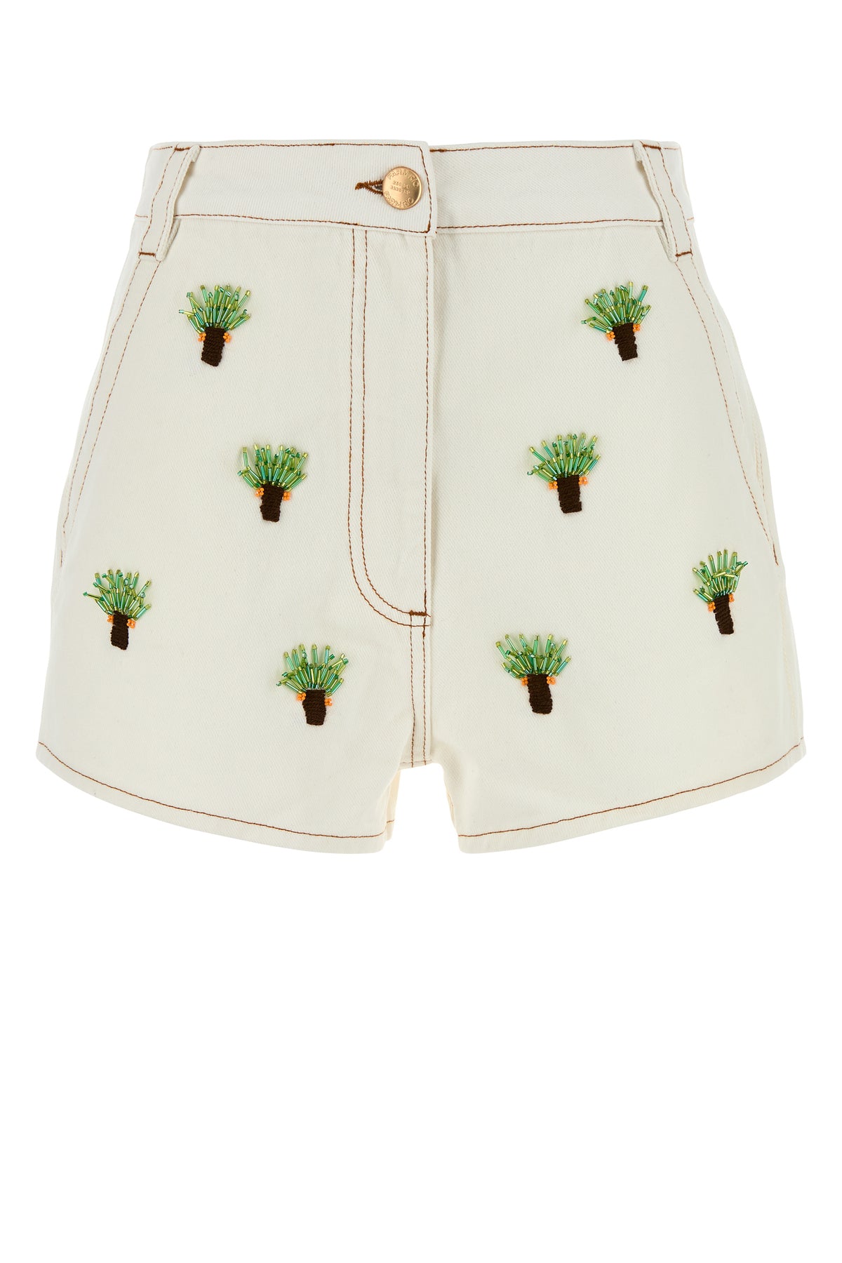 Shorts realized in pure cotton denim characterized by Coconut Tree embroidery at the front.