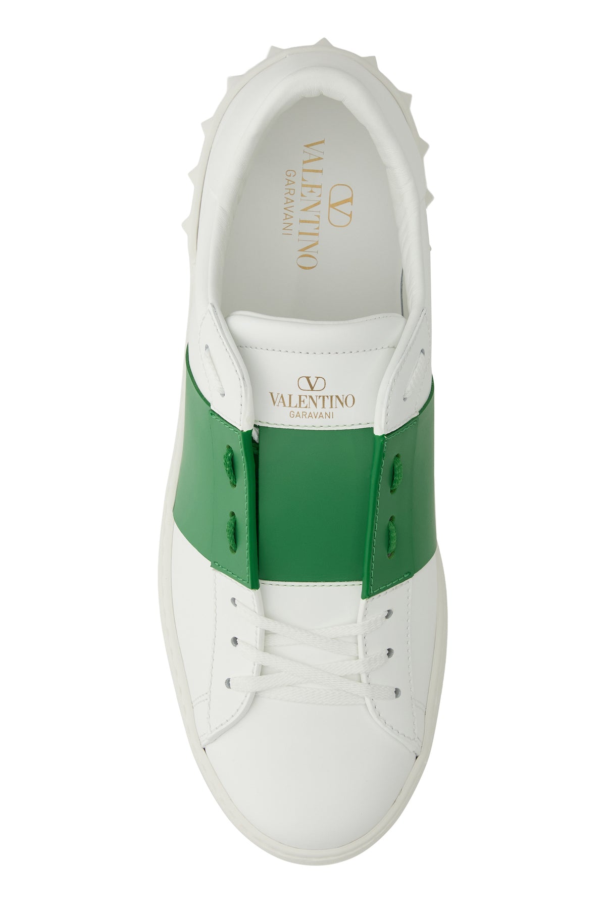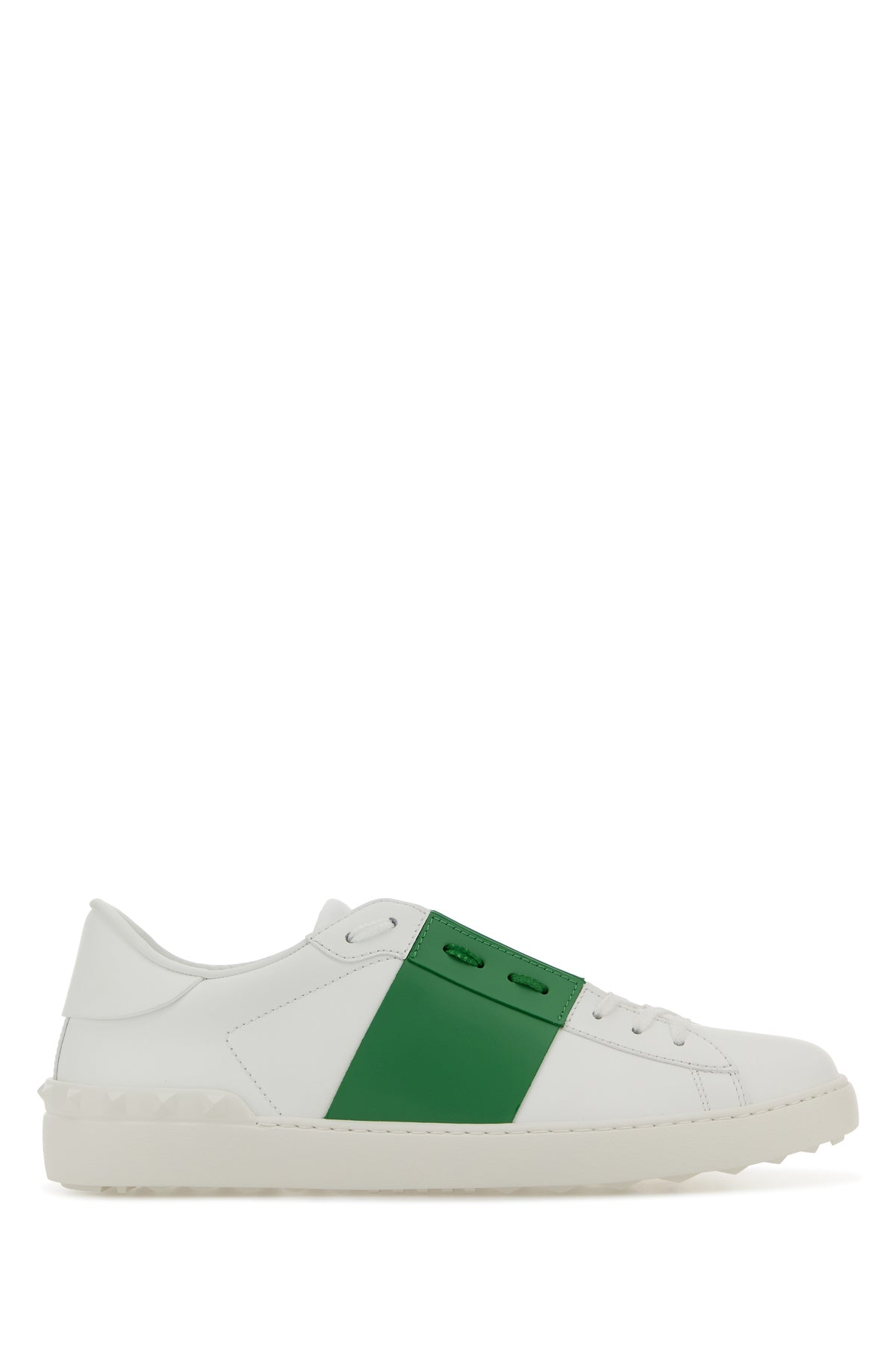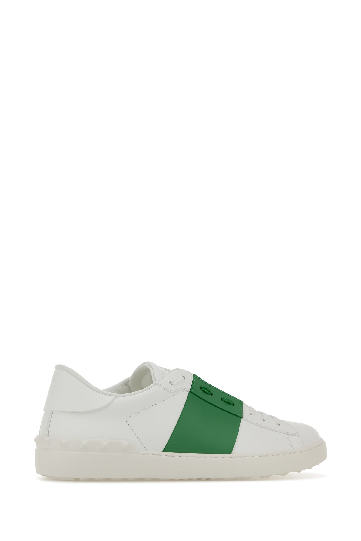 White leather Open sneakers with green band
