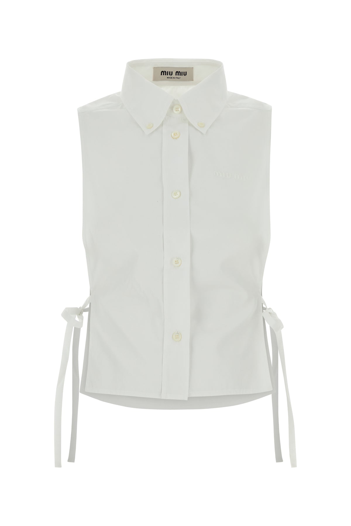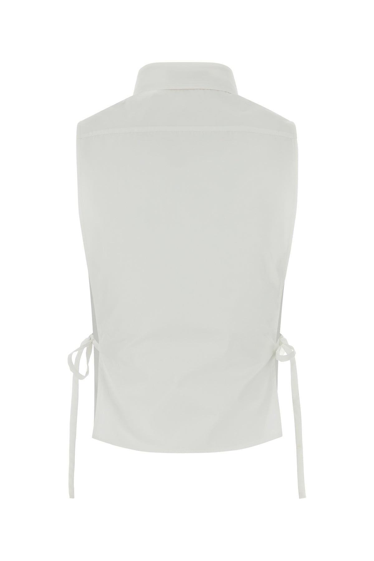 Sleeveless shirt realized in pure cotton poplin characterized by tonal embroidered logo on the chest enriched by laces to tie on the sides.