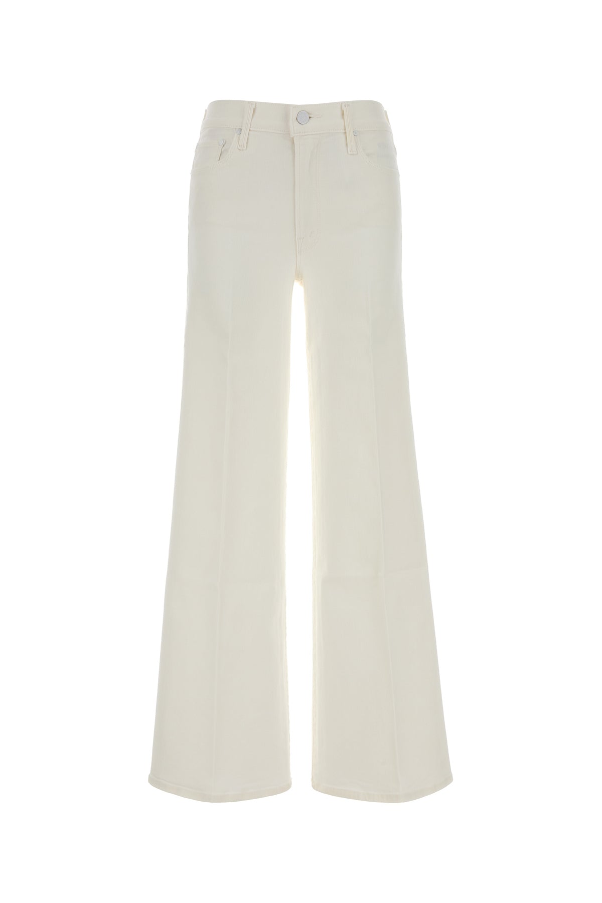 Flared jeans realized in stretch cotton blend denim enriched by logoed label at the back.