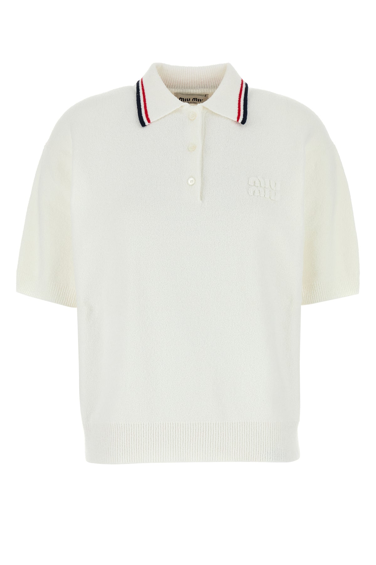 White stretch terry fabric polo shirt