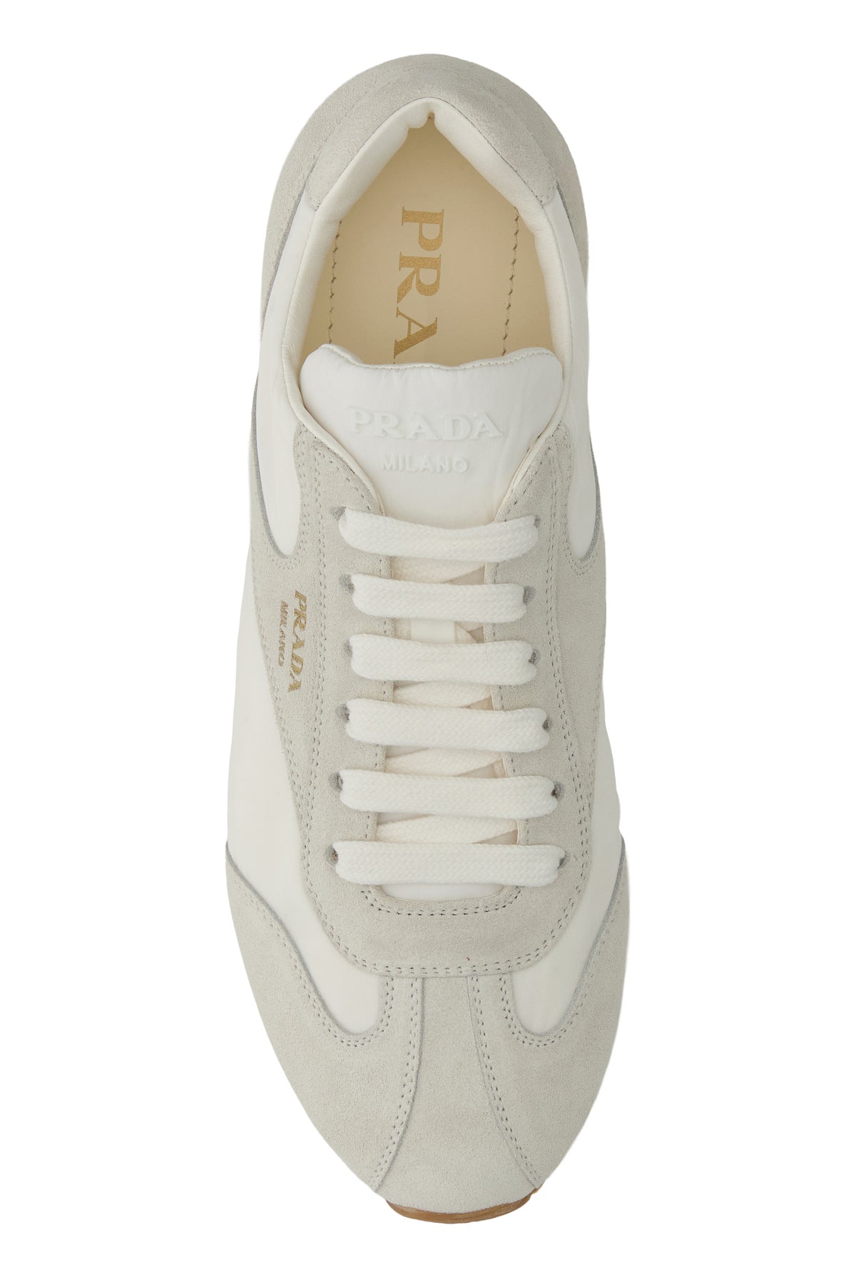 Sneakers realized in calf suede and Re-Nylon characterized by laminated printed logo on the side and embossed logo on the heel.