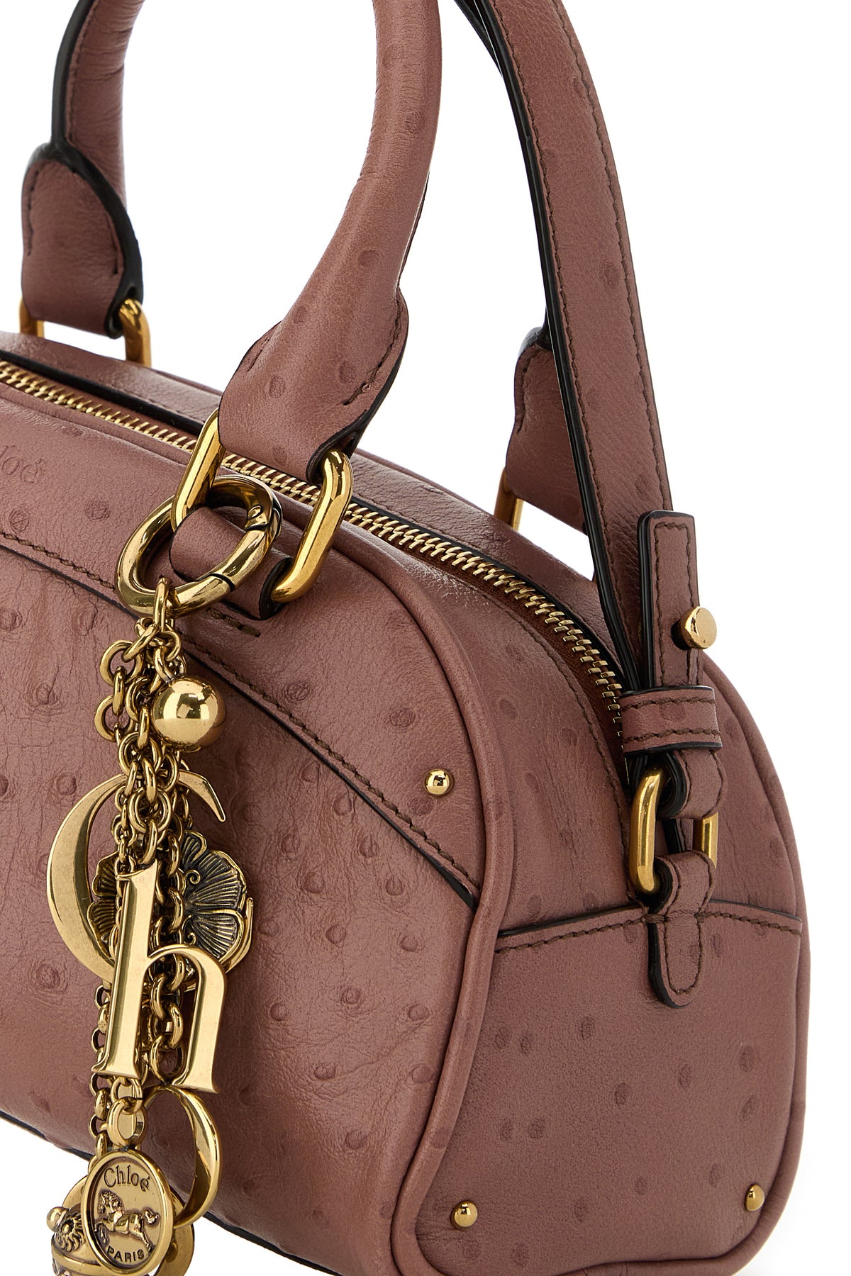 Handbag realized in bovine leather characterized by polka dot motif in relief on the entire surface and embossed logo at the front.