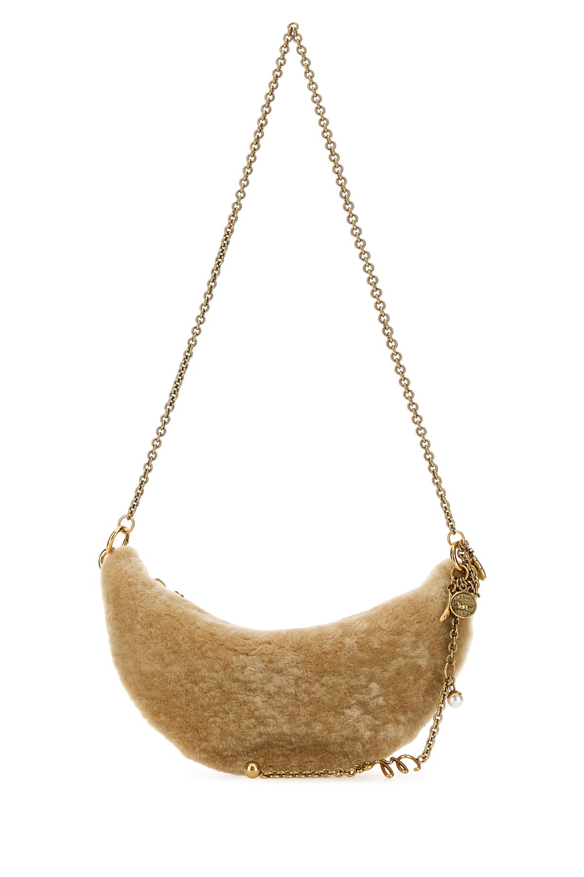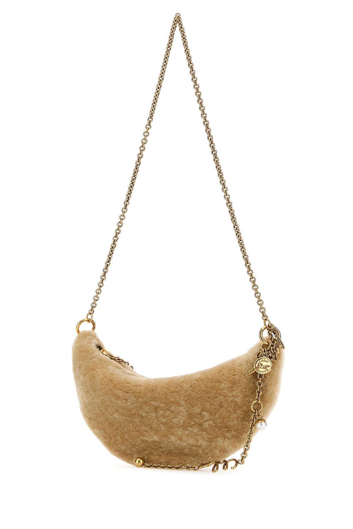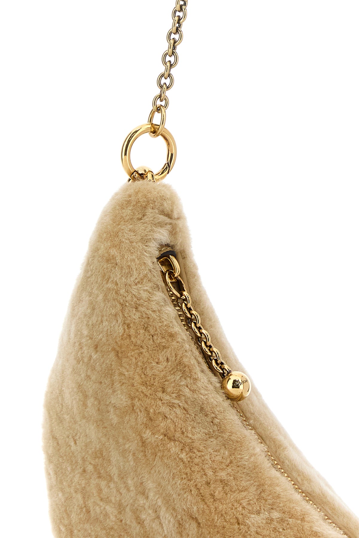 Shoulder bag realized in shearling enriched by detachable logoed charm on the side.