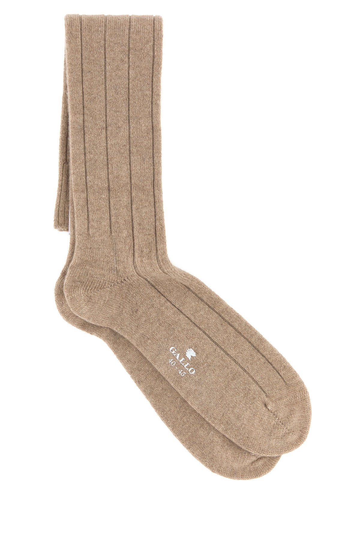 Socks realized in stretch cashmere blend characterized by printed logo on the hemline.