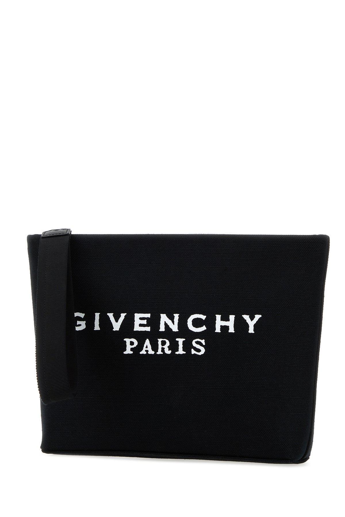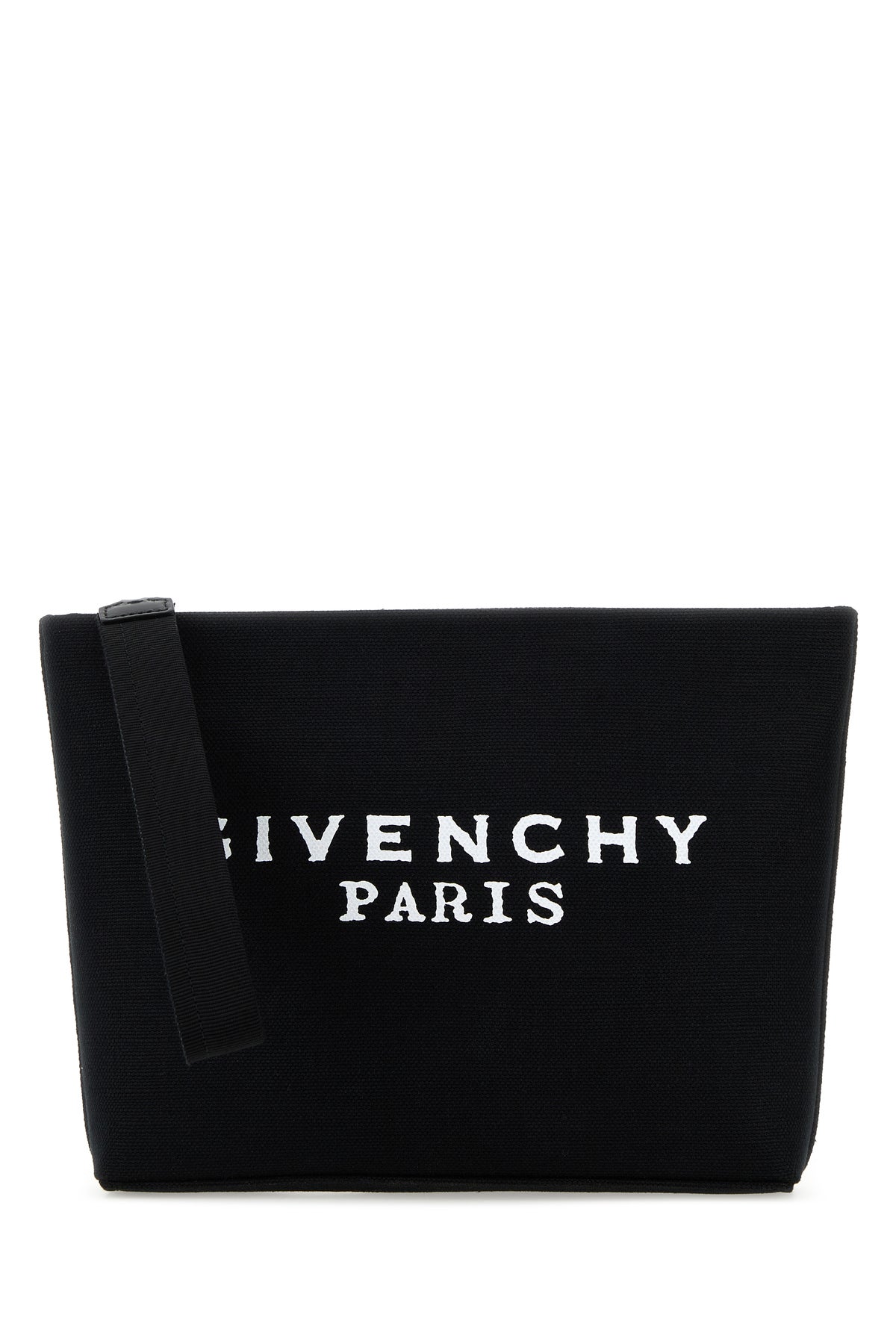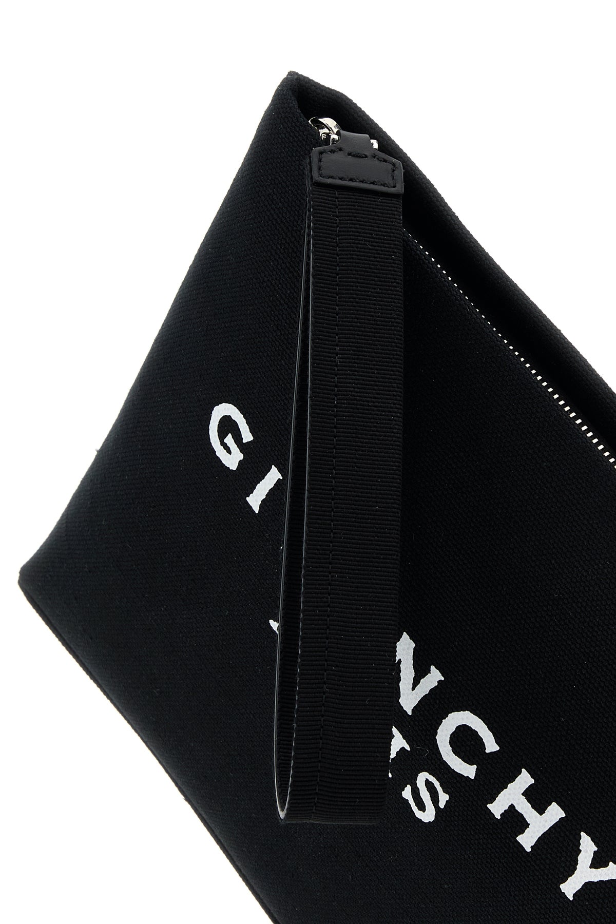 Pouch realized in canvas characterized by contrasting printed logo at the front.