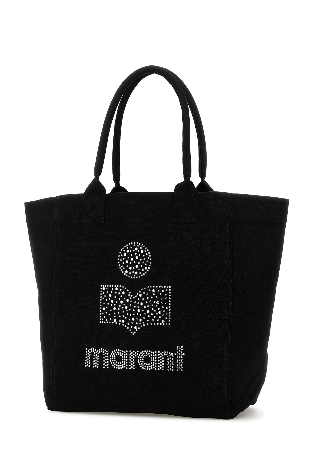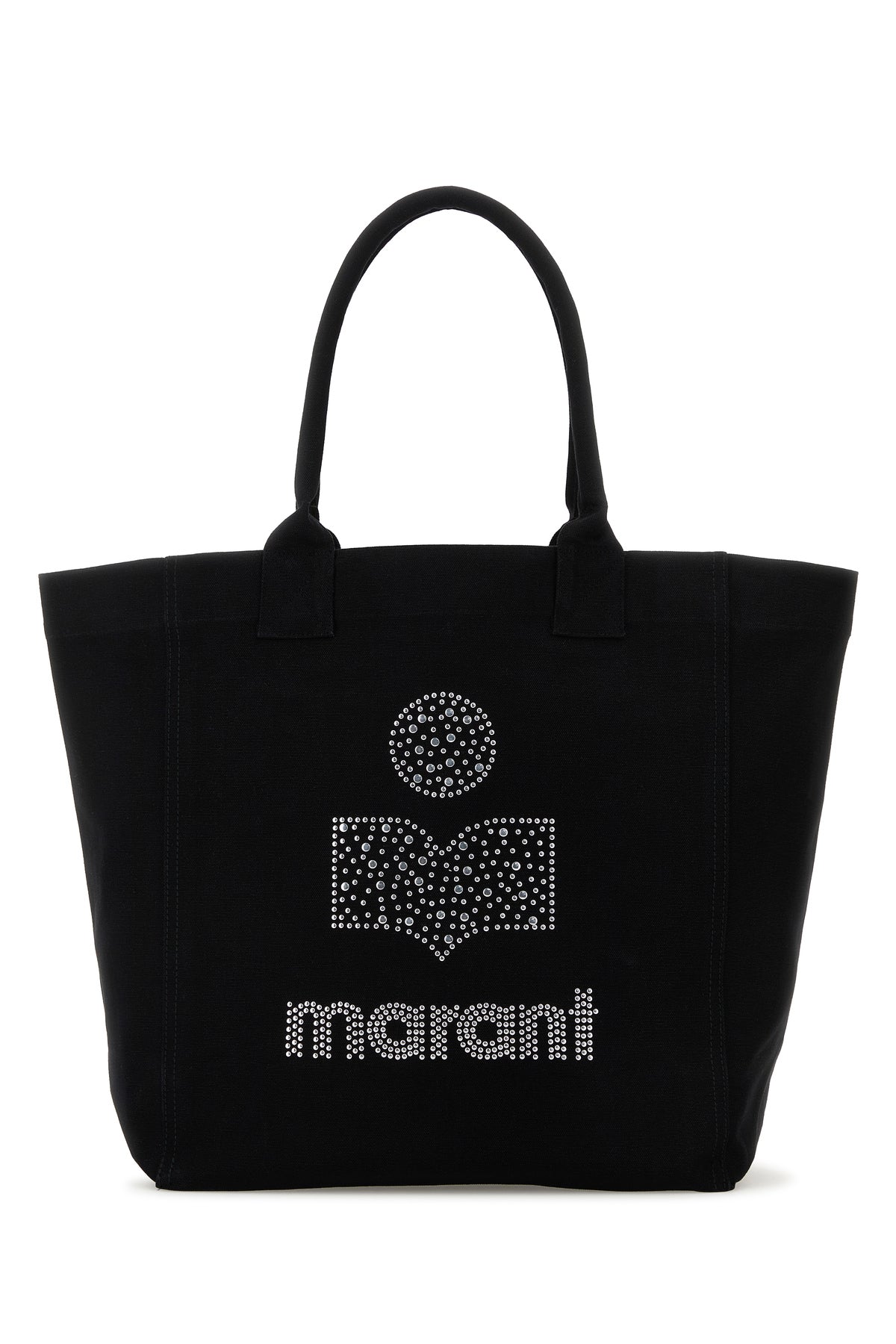 Shopping bag realized in pure cotton canvas enriched by metal studs logo at the front.