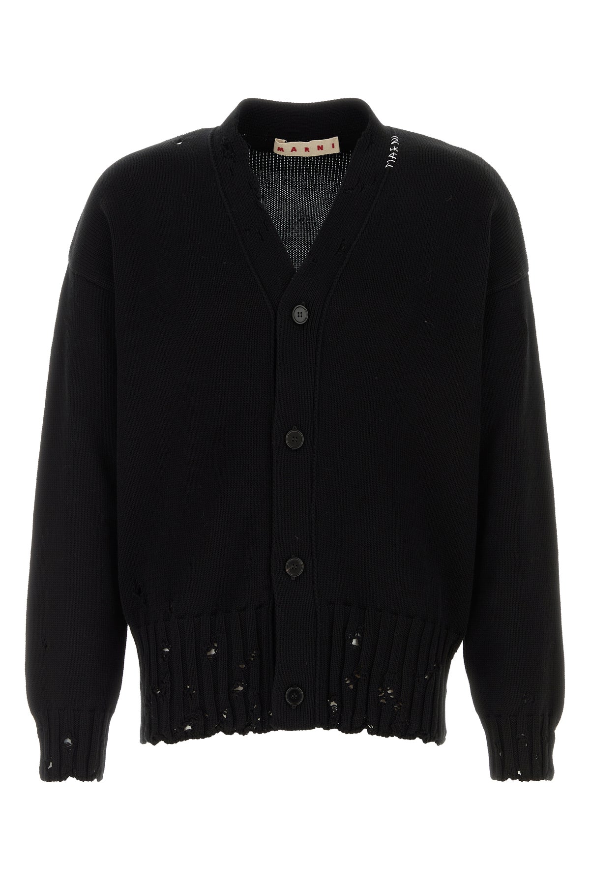 - Distressed effect ribbed cuffs and hemline