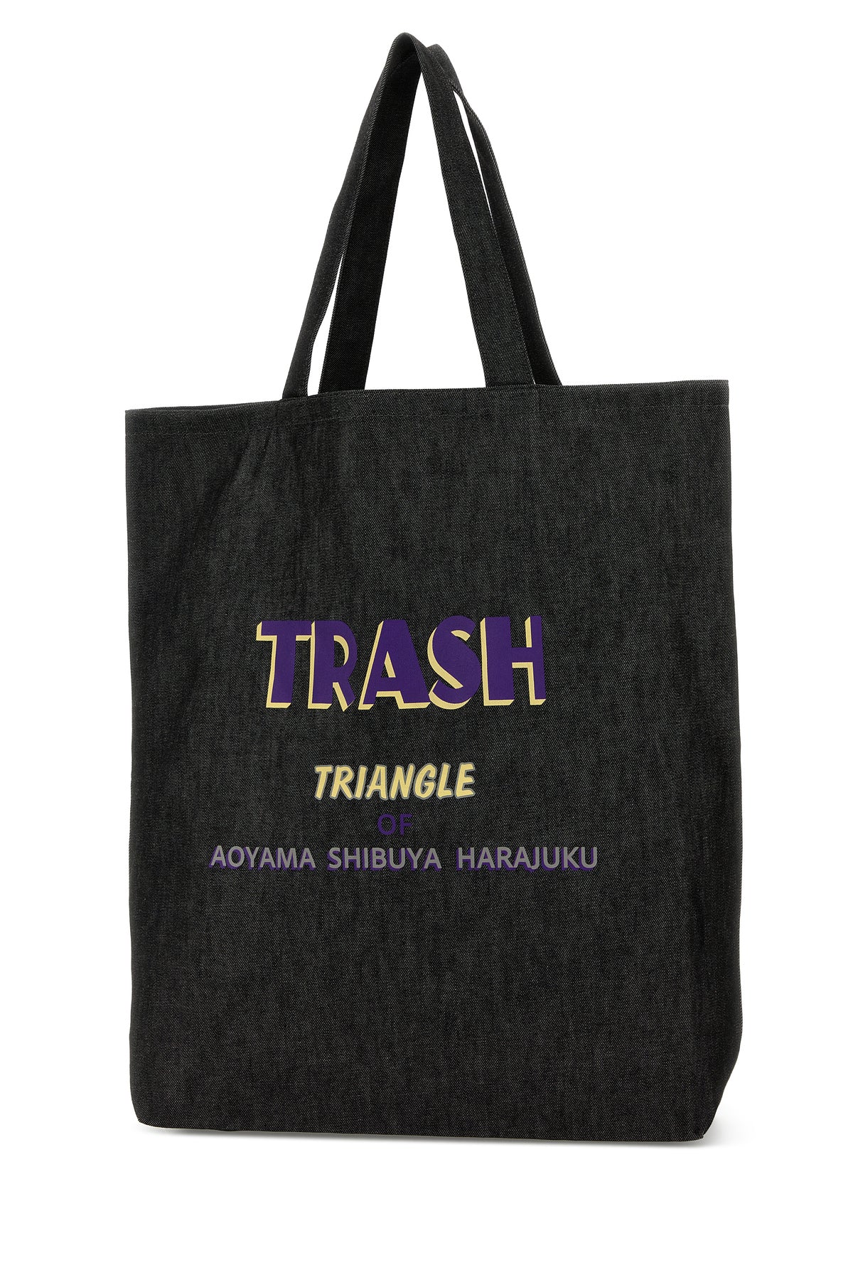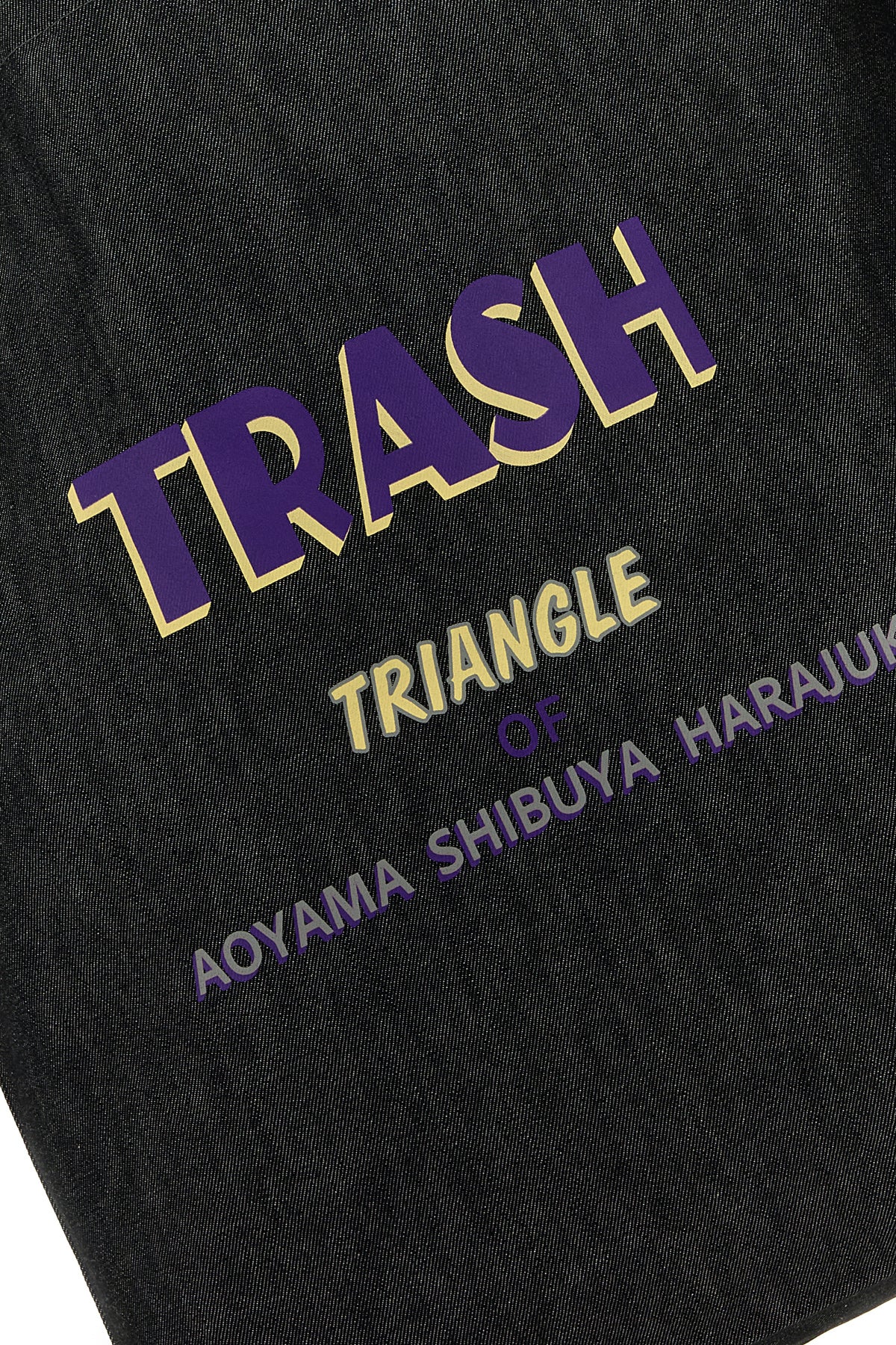 Shopping bag realized in denim characterized by logoed print at the front and at the back.