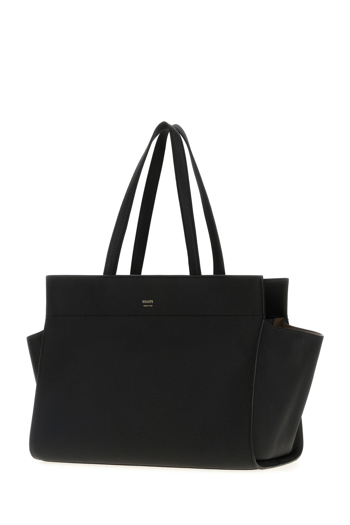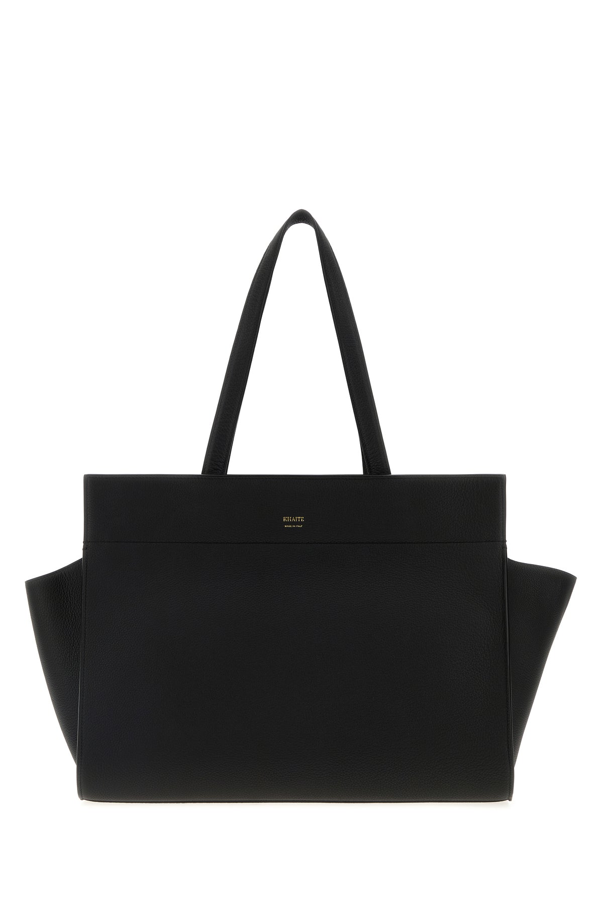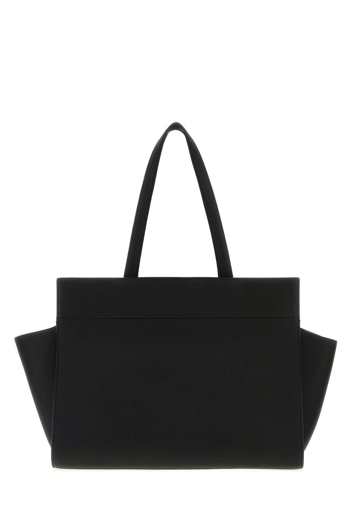 Handbag realized in pebble leather characterized by laminated printed logo at the front.
