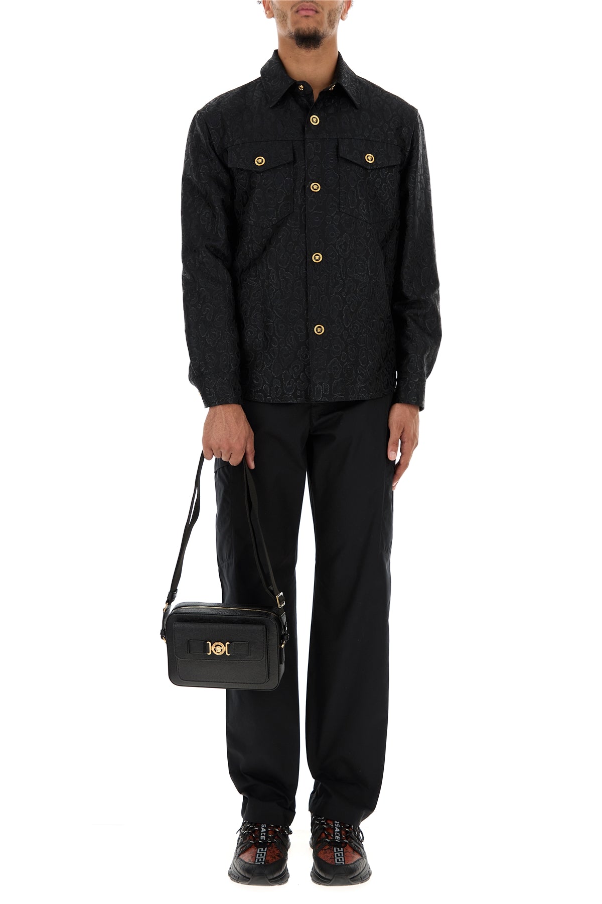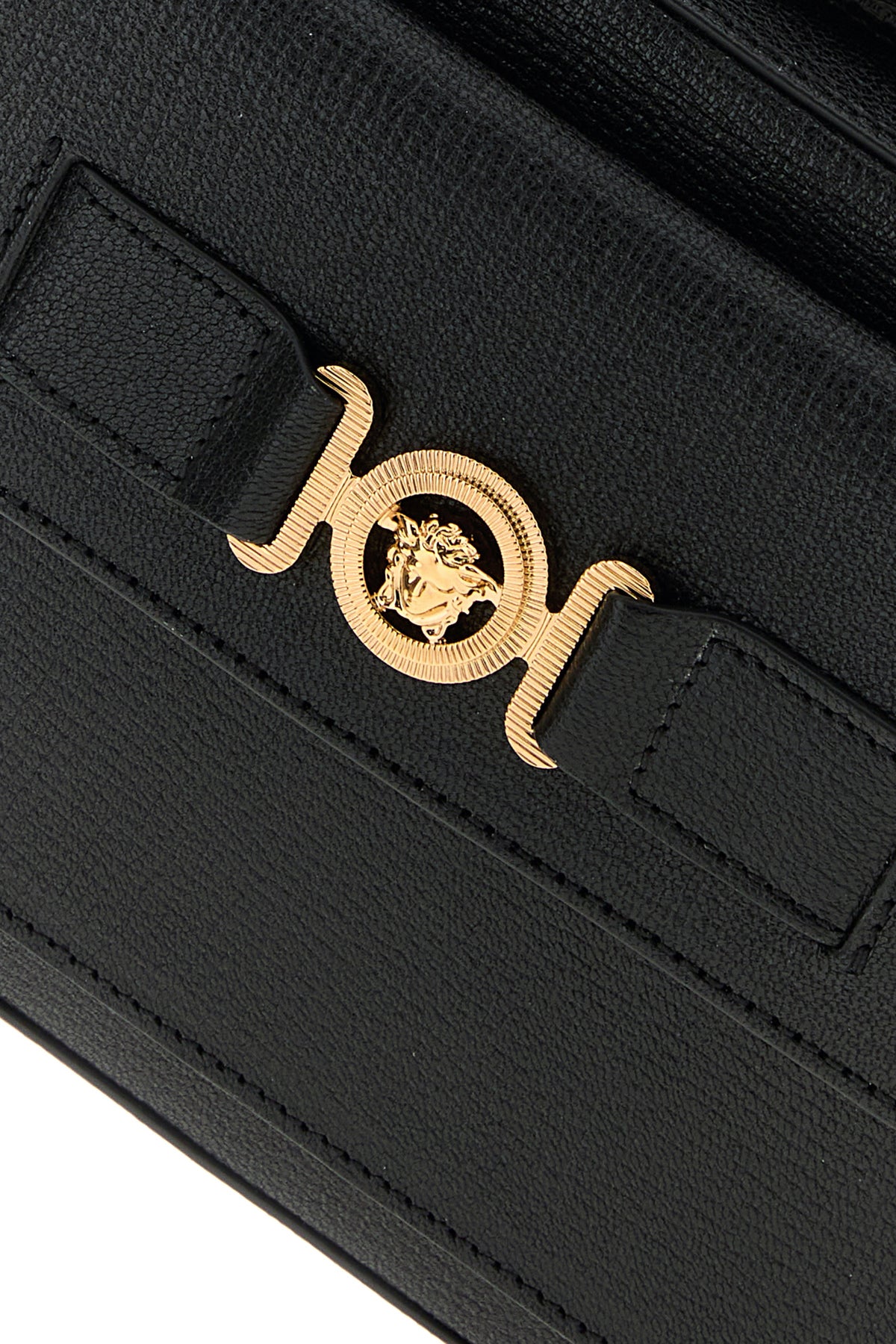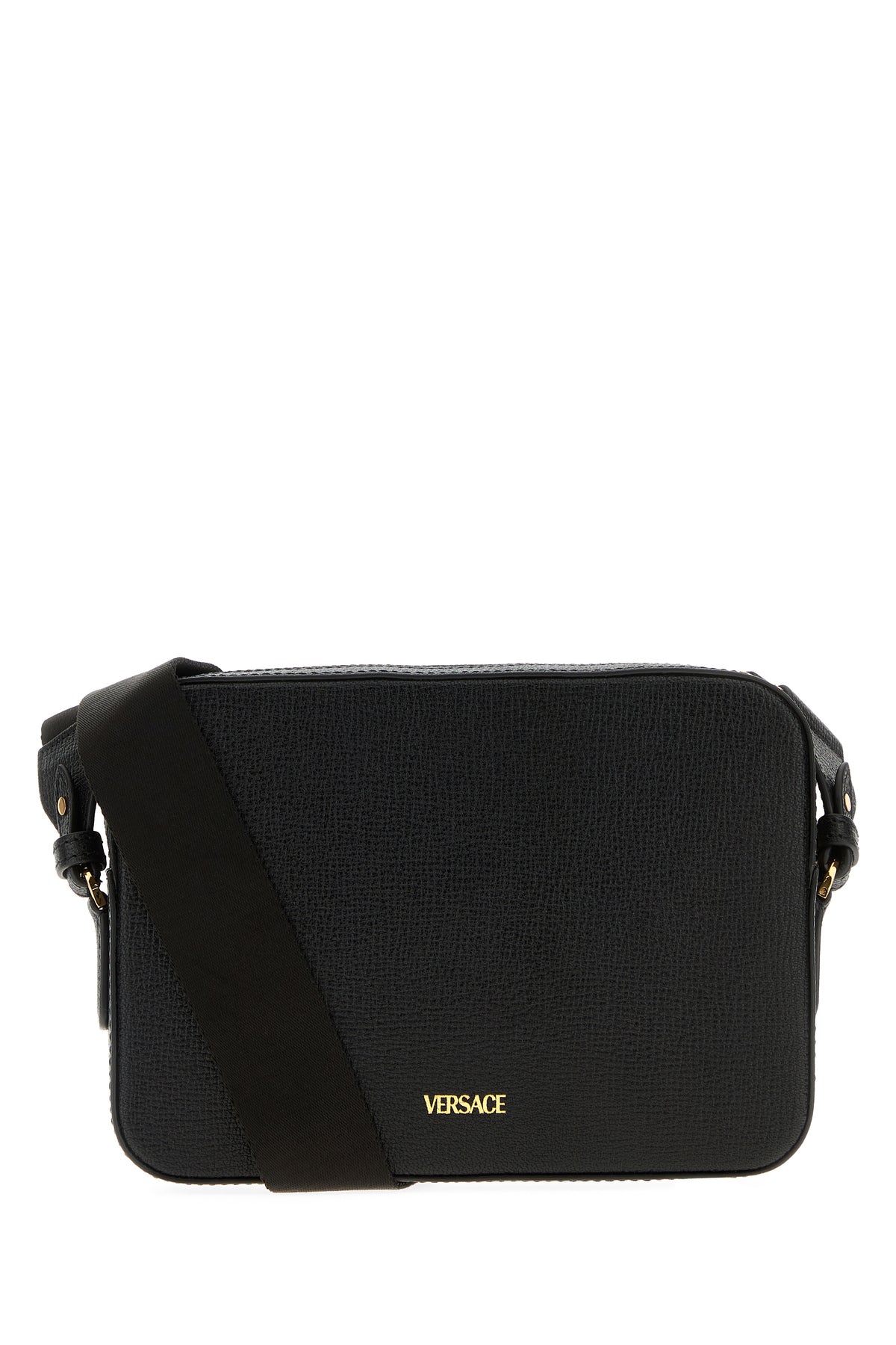 Crossbody bag realized in pebble ovine leather characterized by laminated printed logo at the back enriched by Medusa meta detail at the front.
