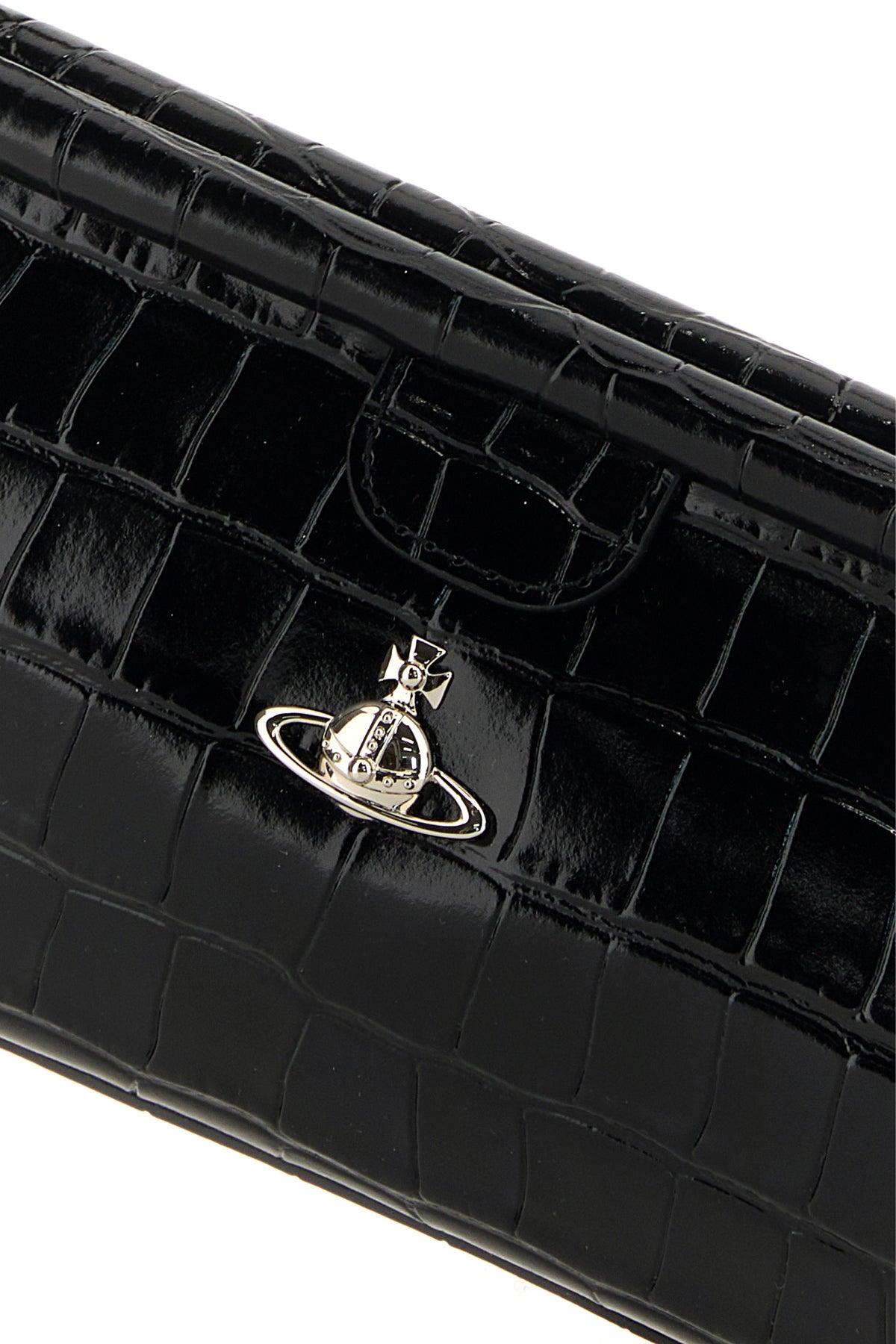 Shoulder bag realized in crocodile embossed leather enriched by Orb metal detail at the front.