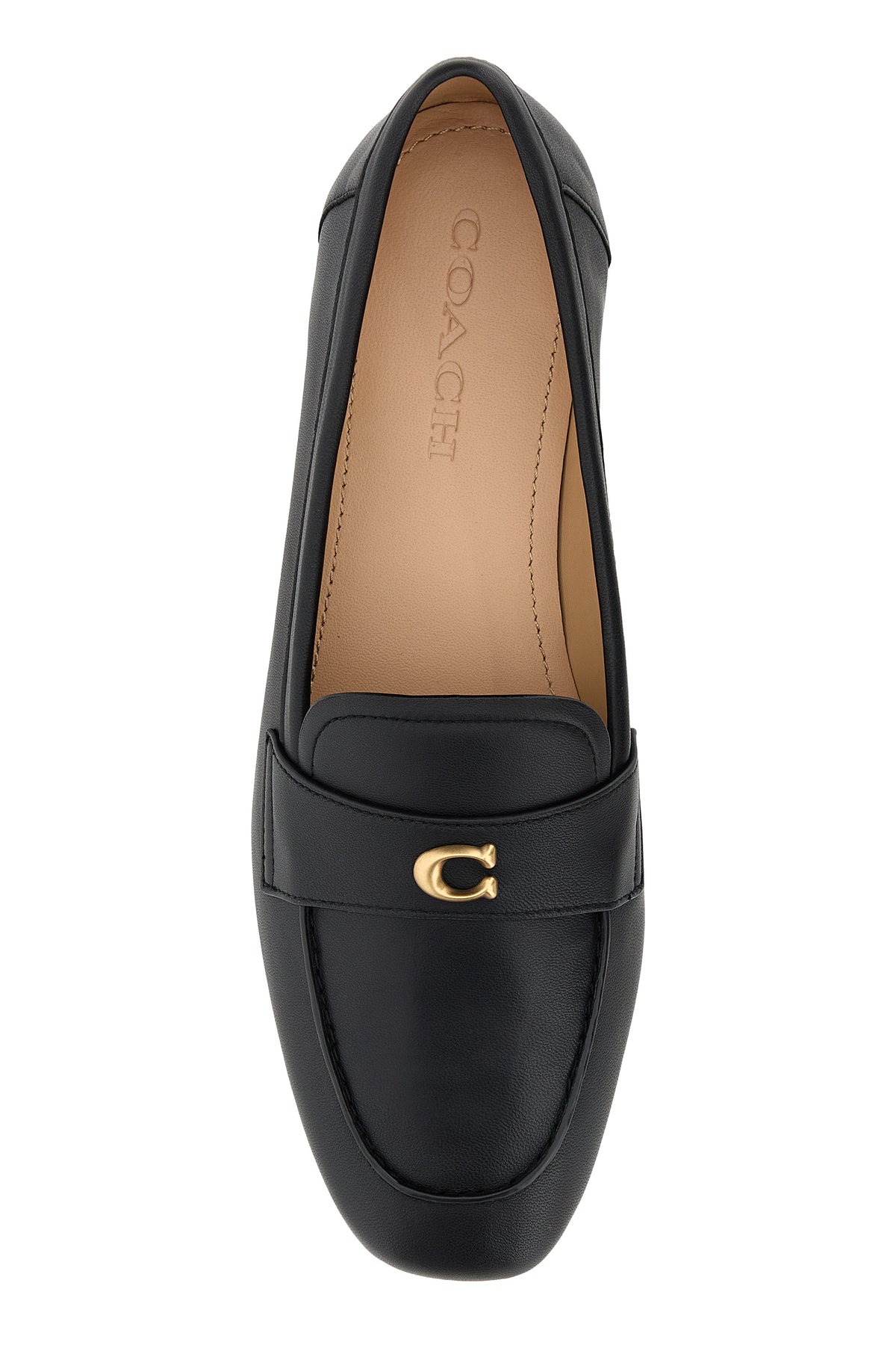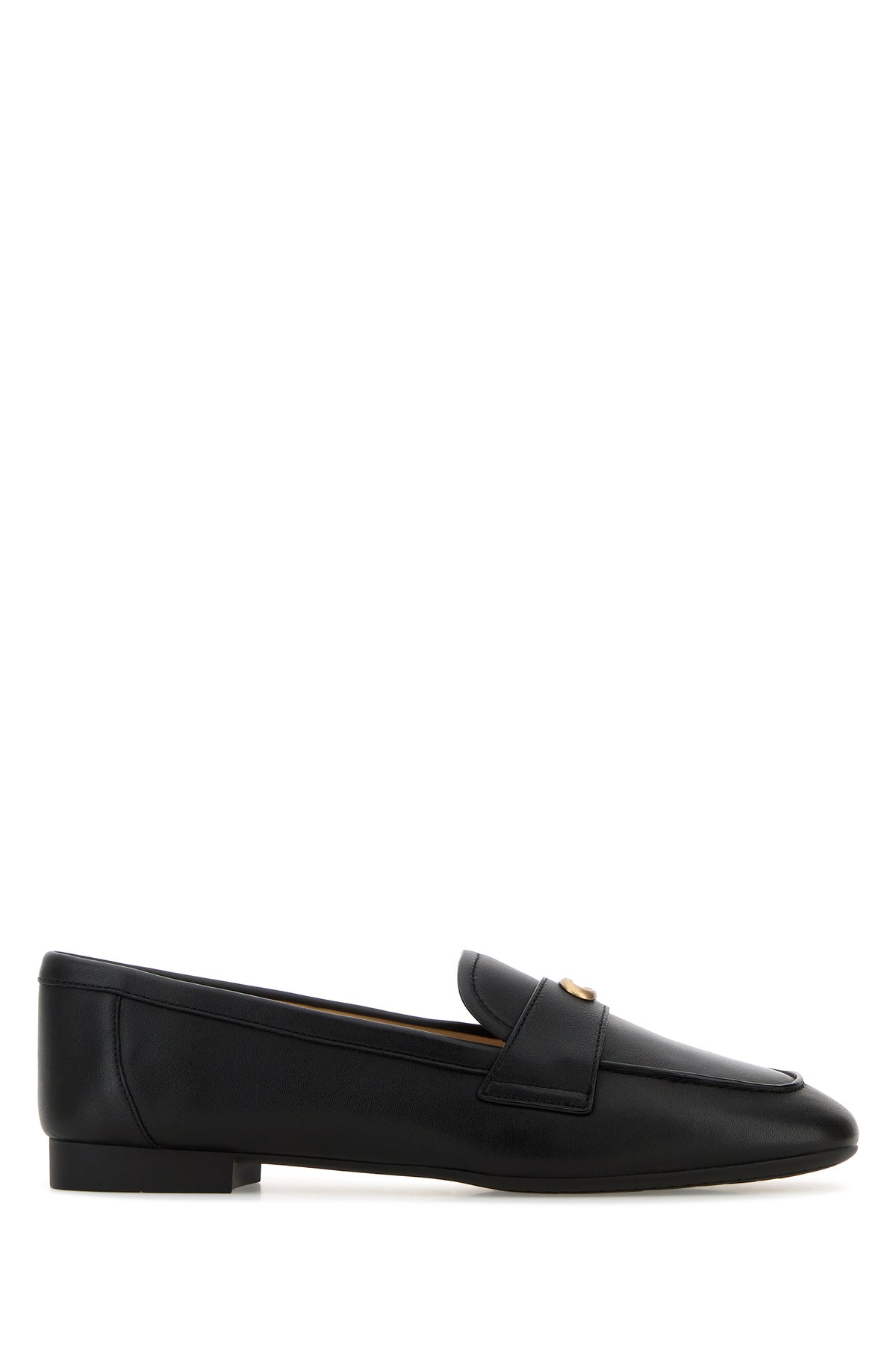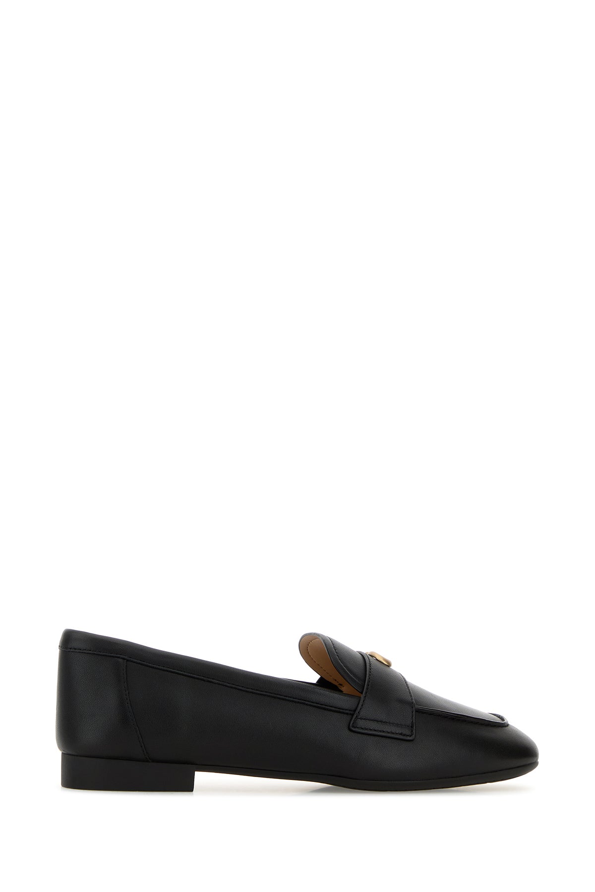 Loafers realized in leather enriched by logoed metal detail on the vamp.