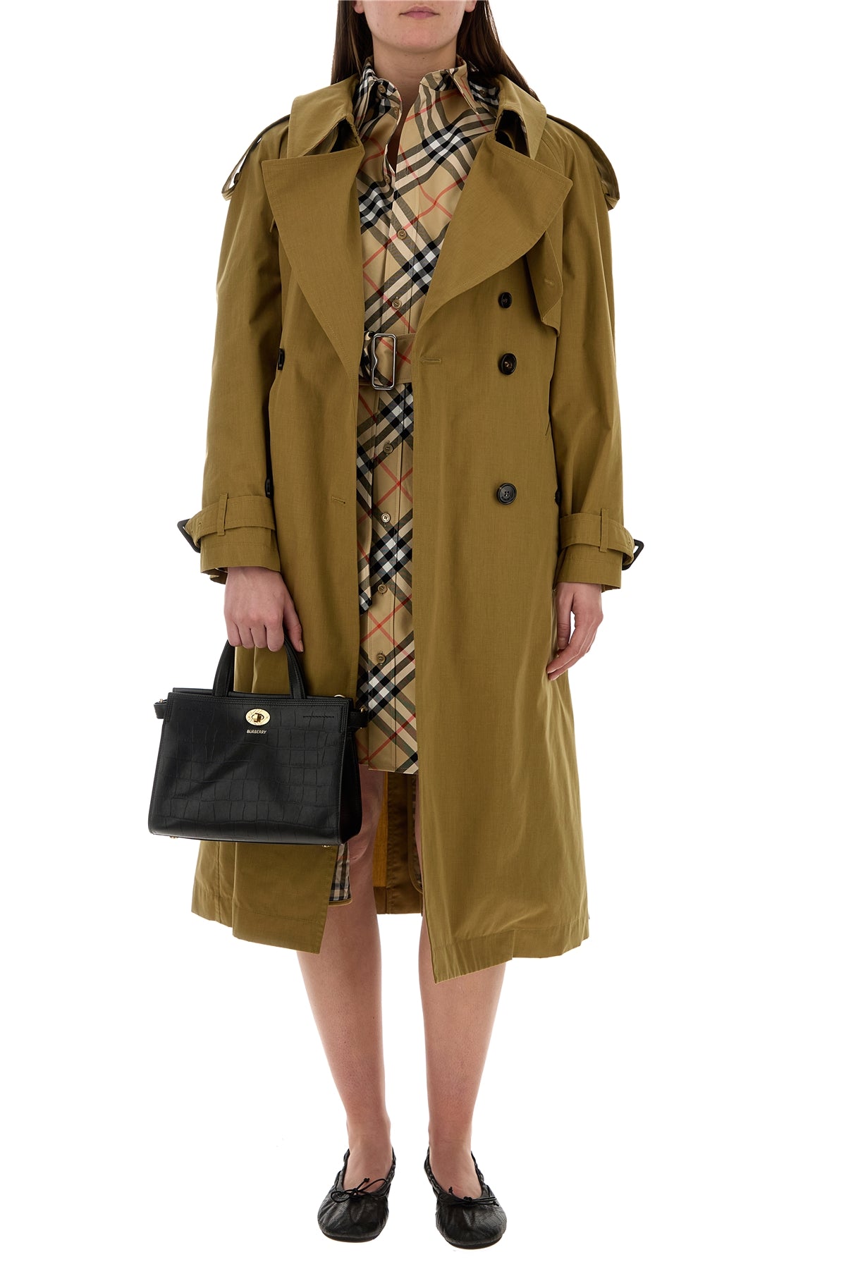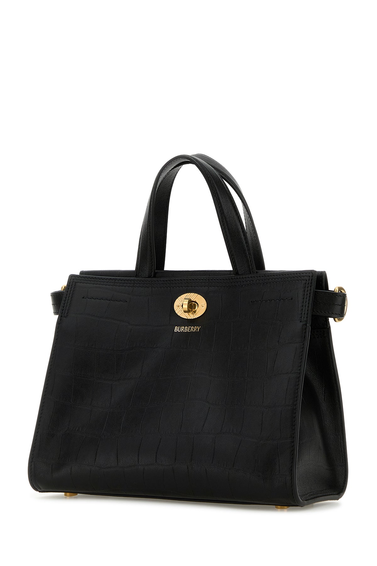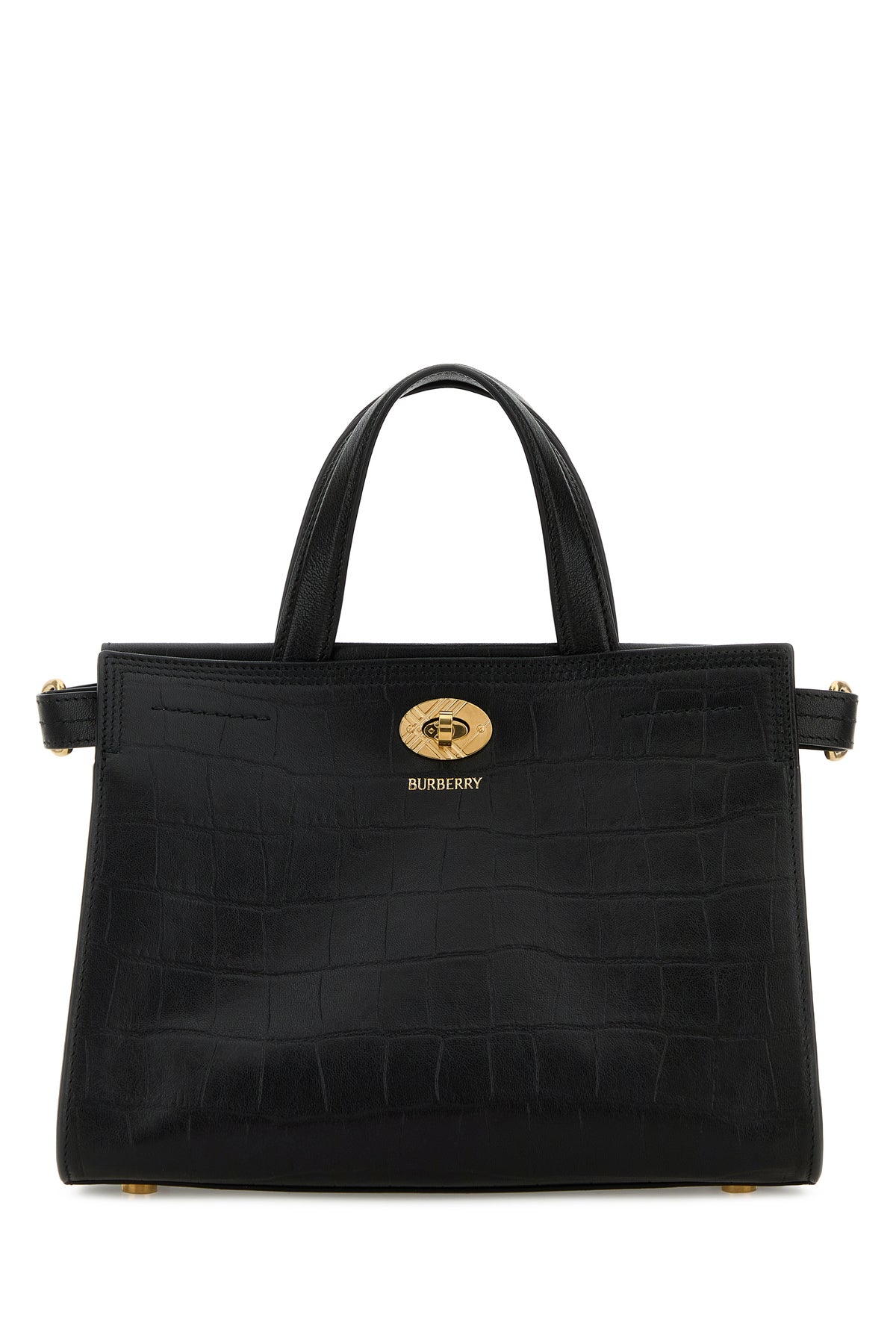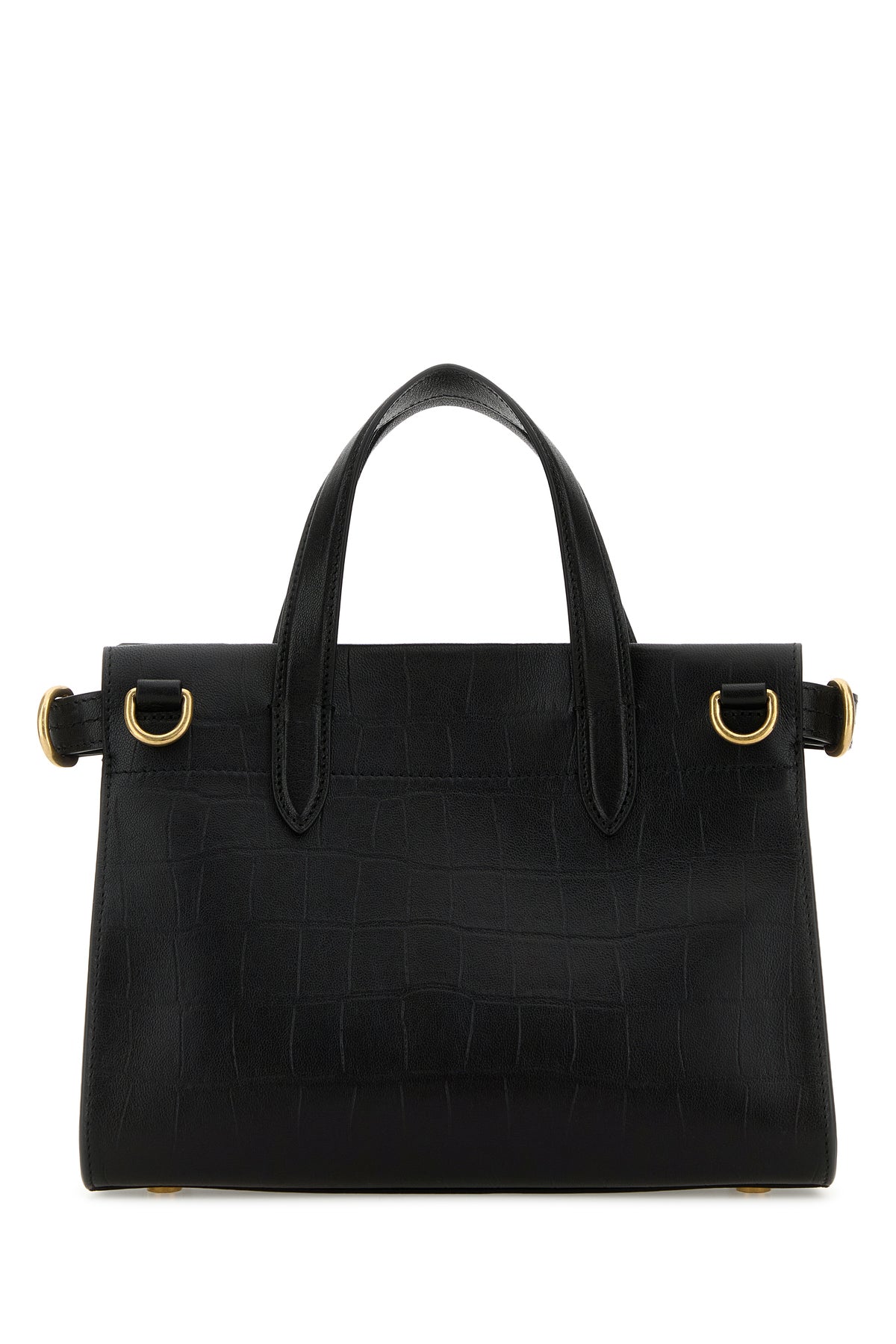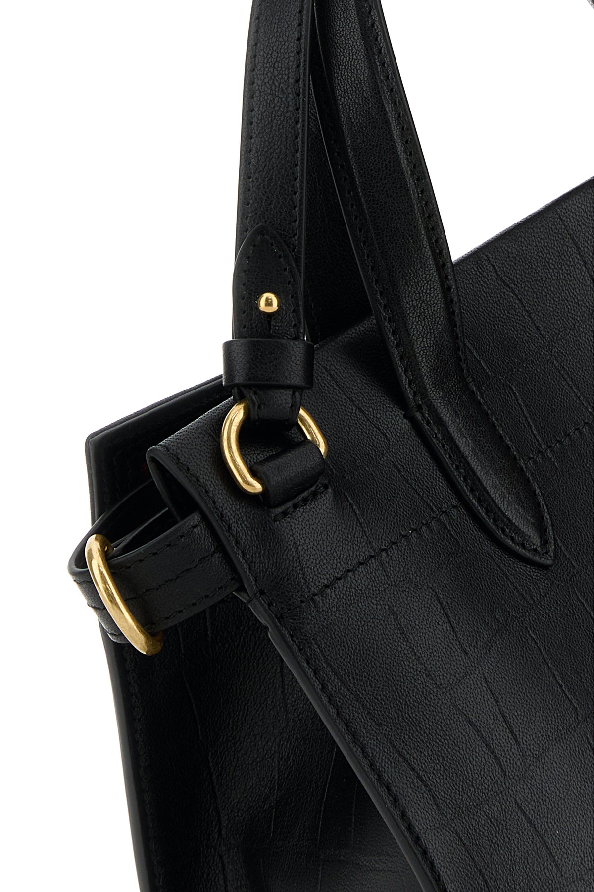Handbag realized in crocodile embossed lamb leather characterized by laminated printed logo at the front.