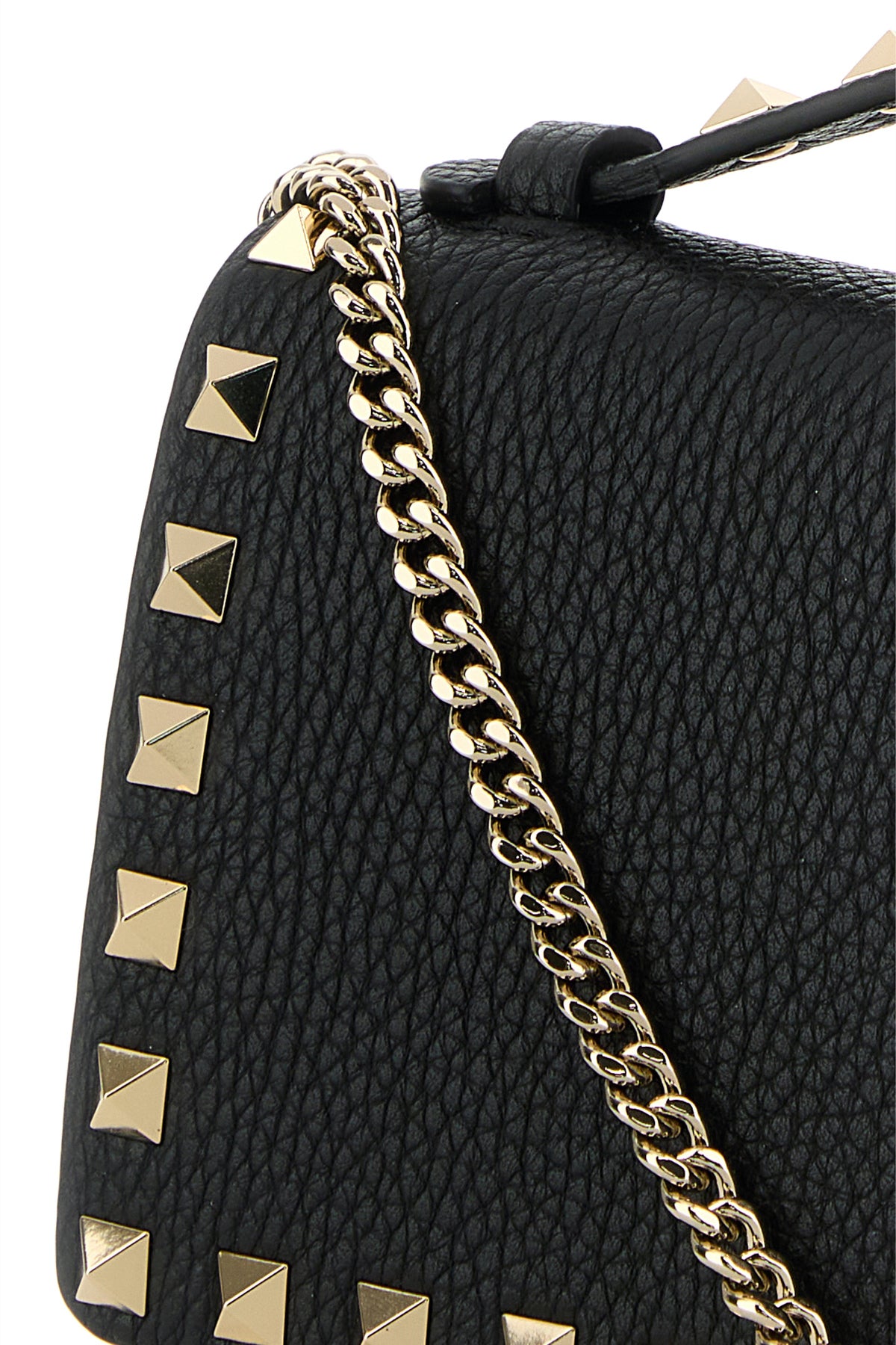 Handbag realized in pebble leather enriched by metal studs on the trimmings.