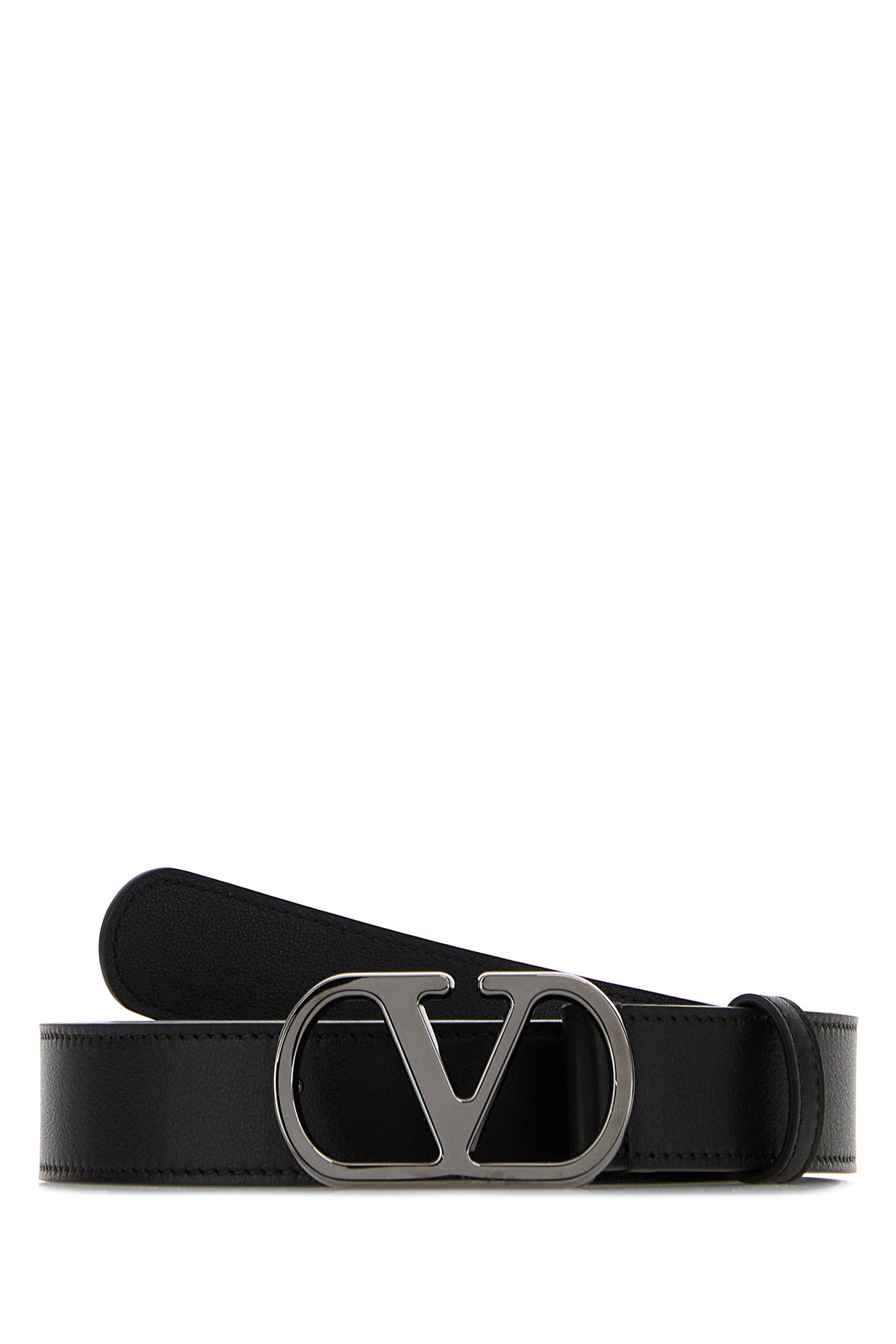 Black leather VLogo belt