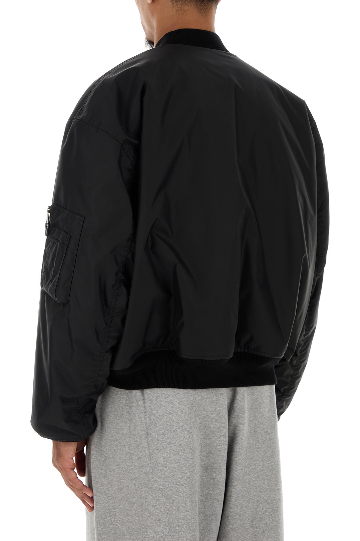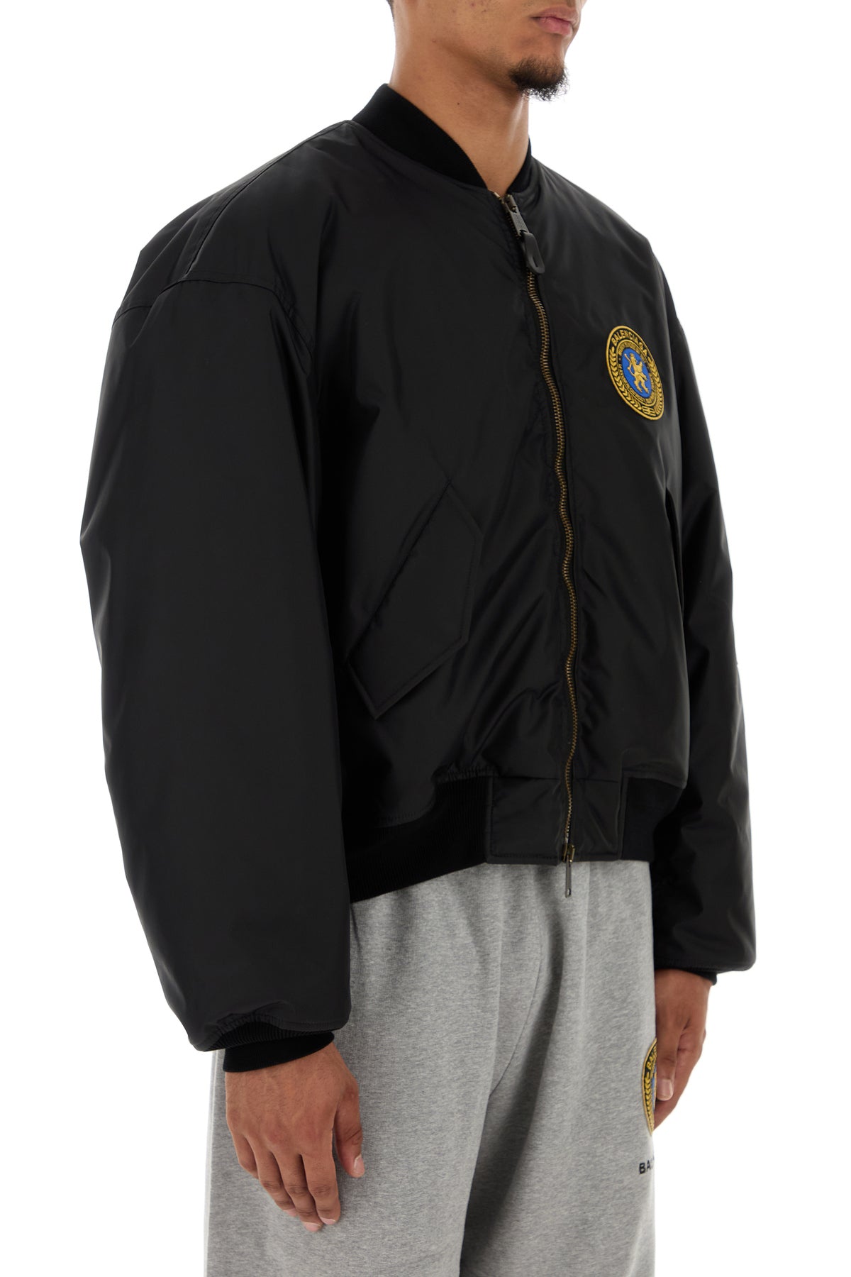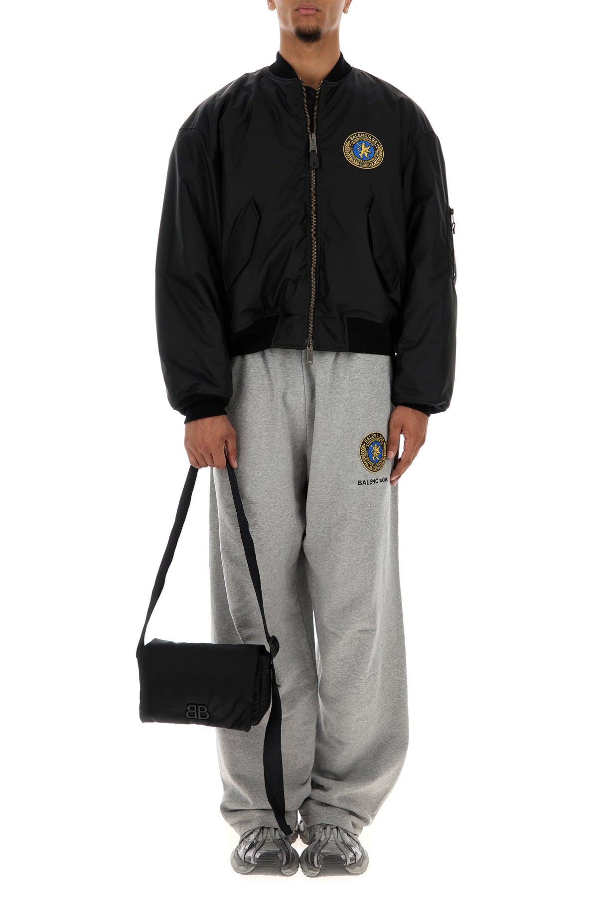 Bomber jacket realized in nylon enriched by peculiar logoed patch on the chest.