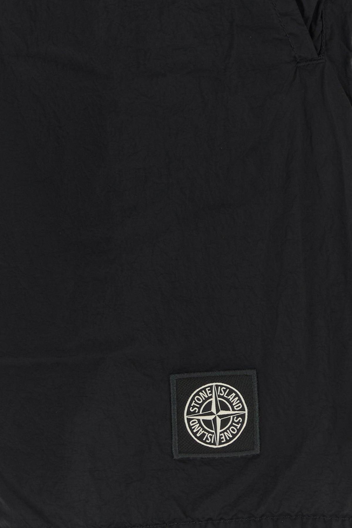 Swimming shorts realized in coated nylon enriched by logoed label at the front.