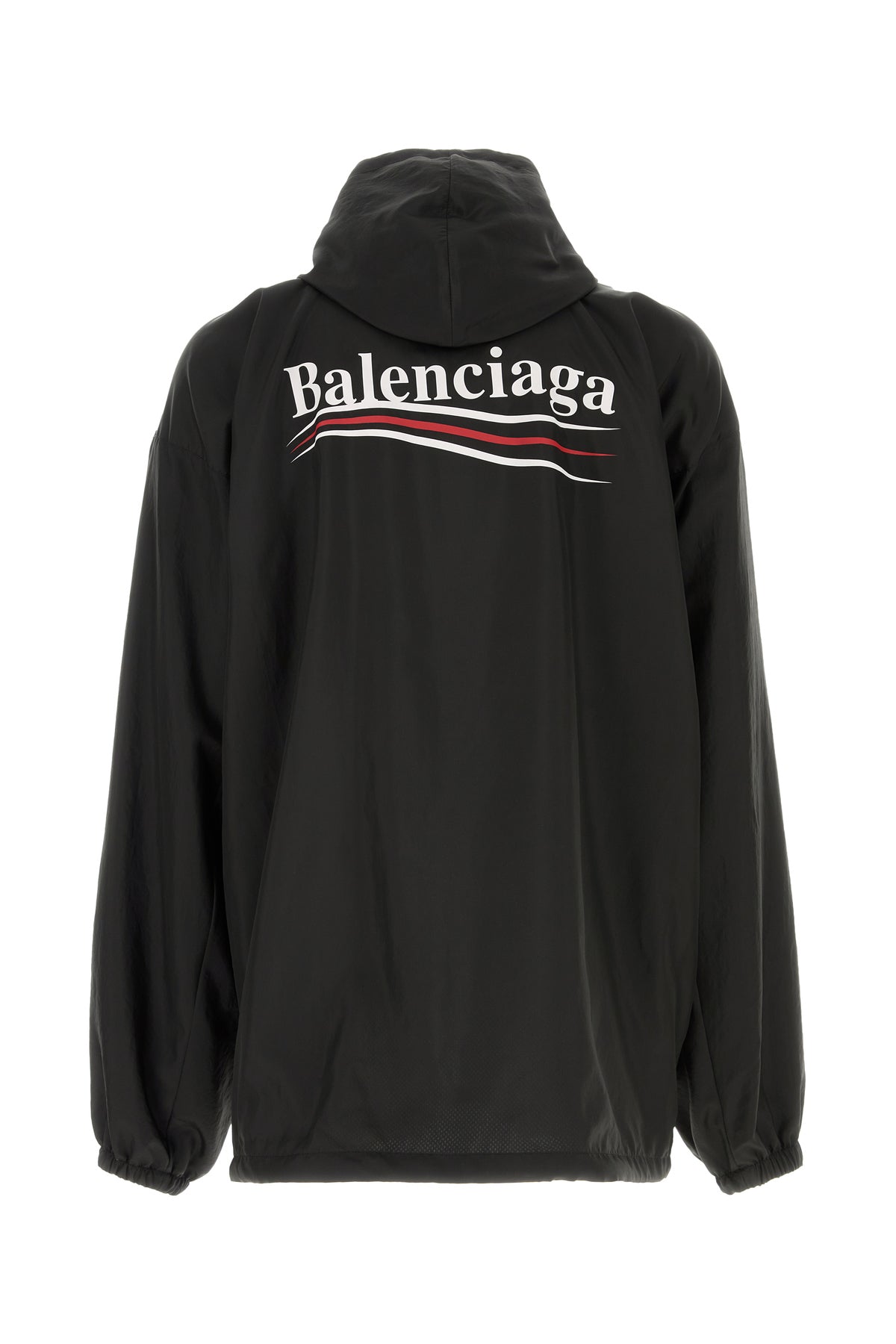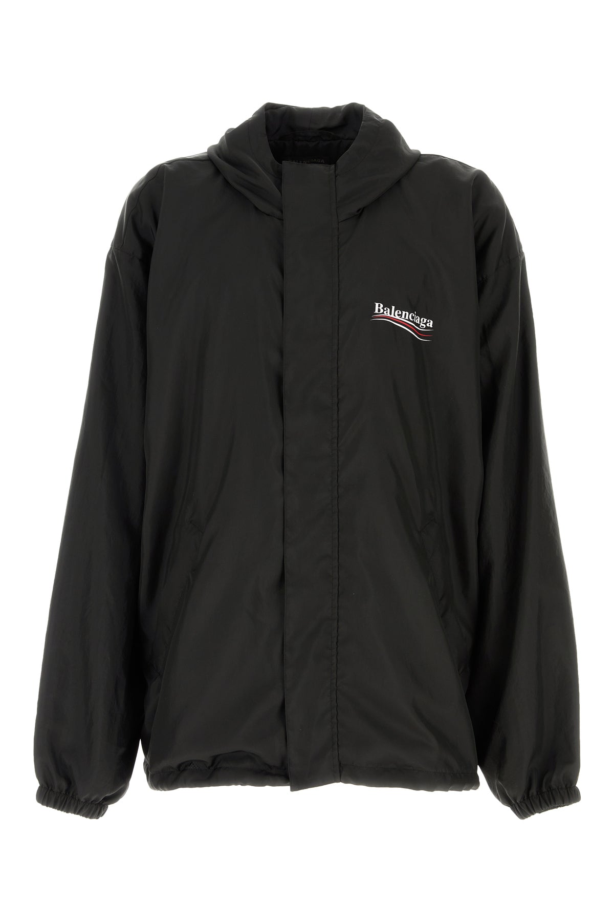 Jacket realized in polyester characterized by contrasting printed logo on the chest and at the back.
