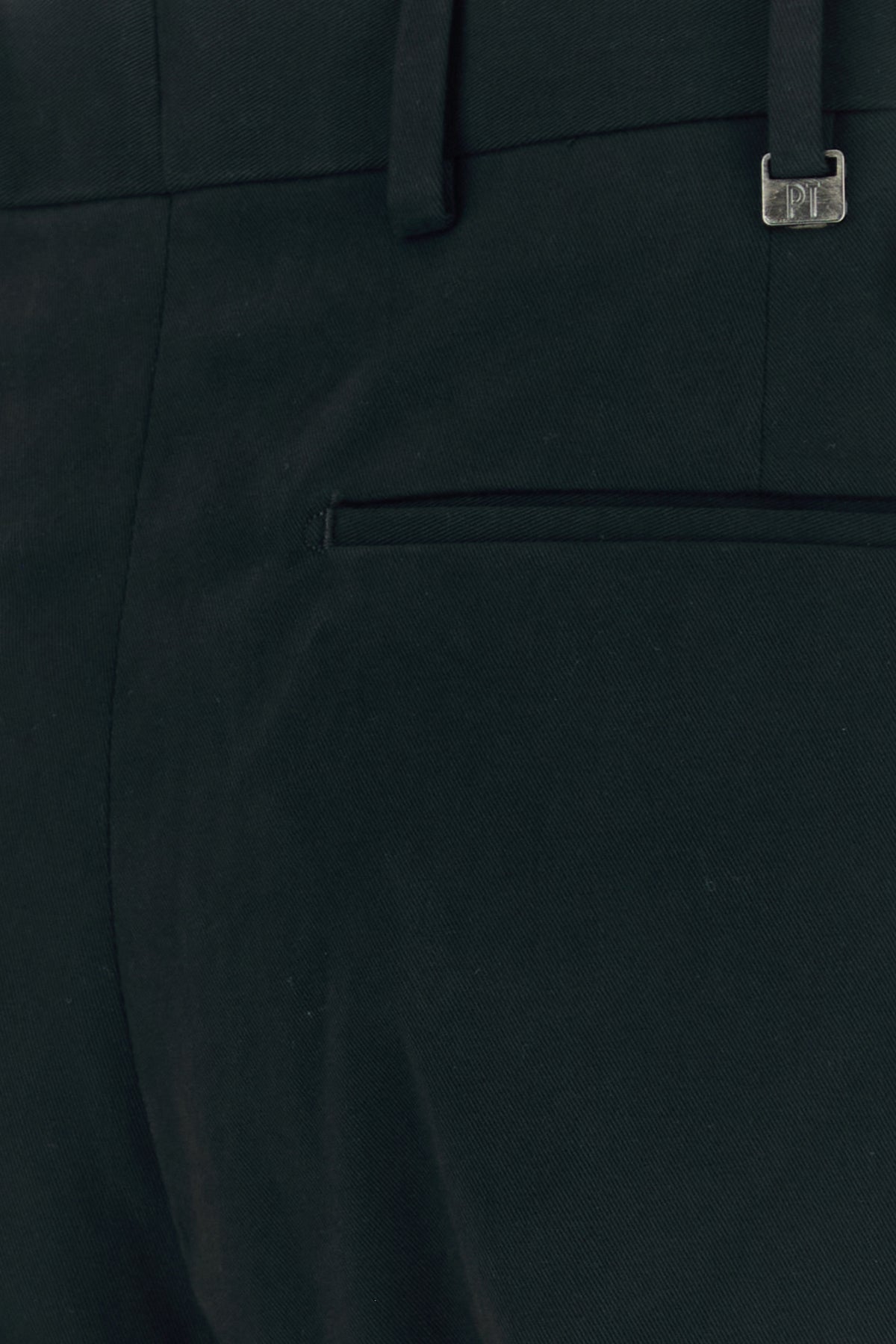 Pant realized in stretch cotton characterized by central ironed pleats.