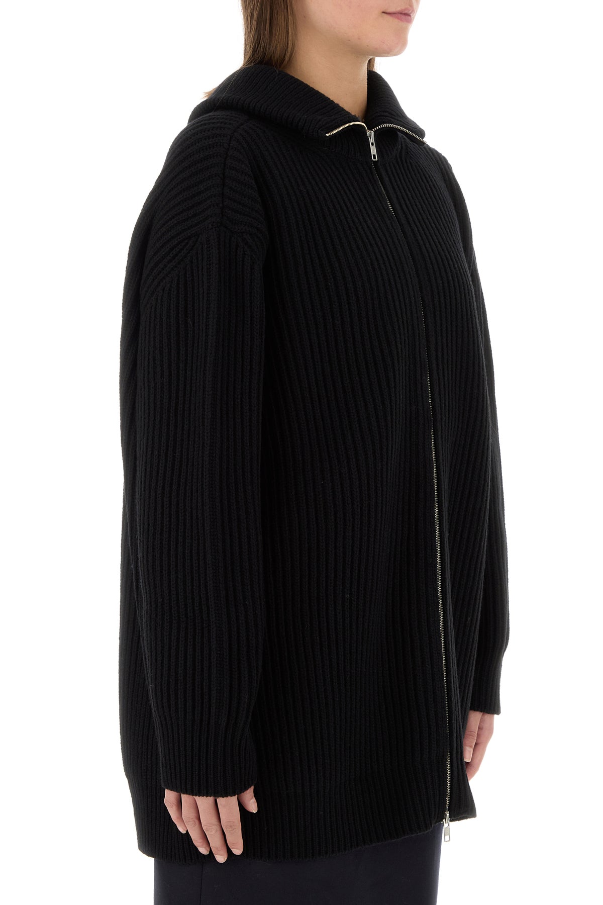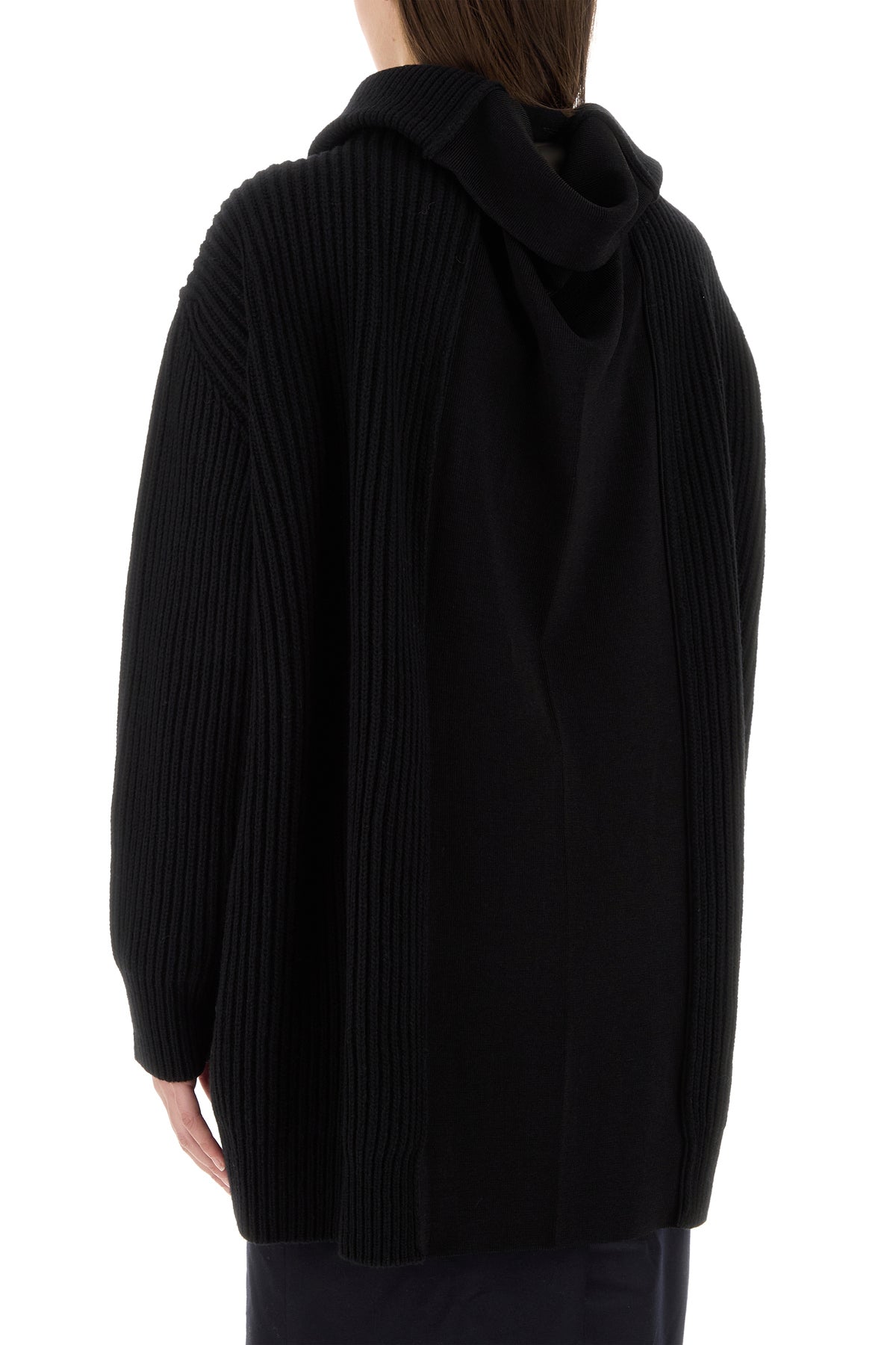 Black wool blend oversize cardigan