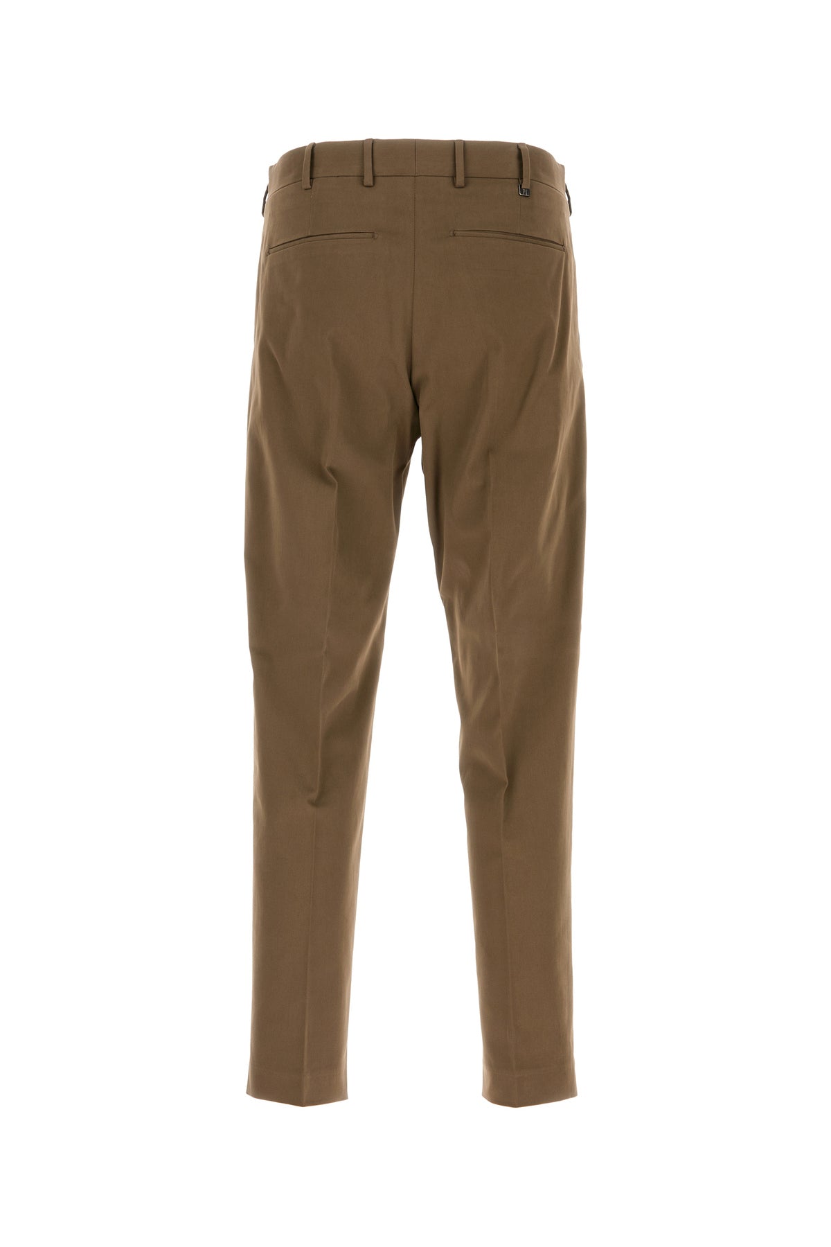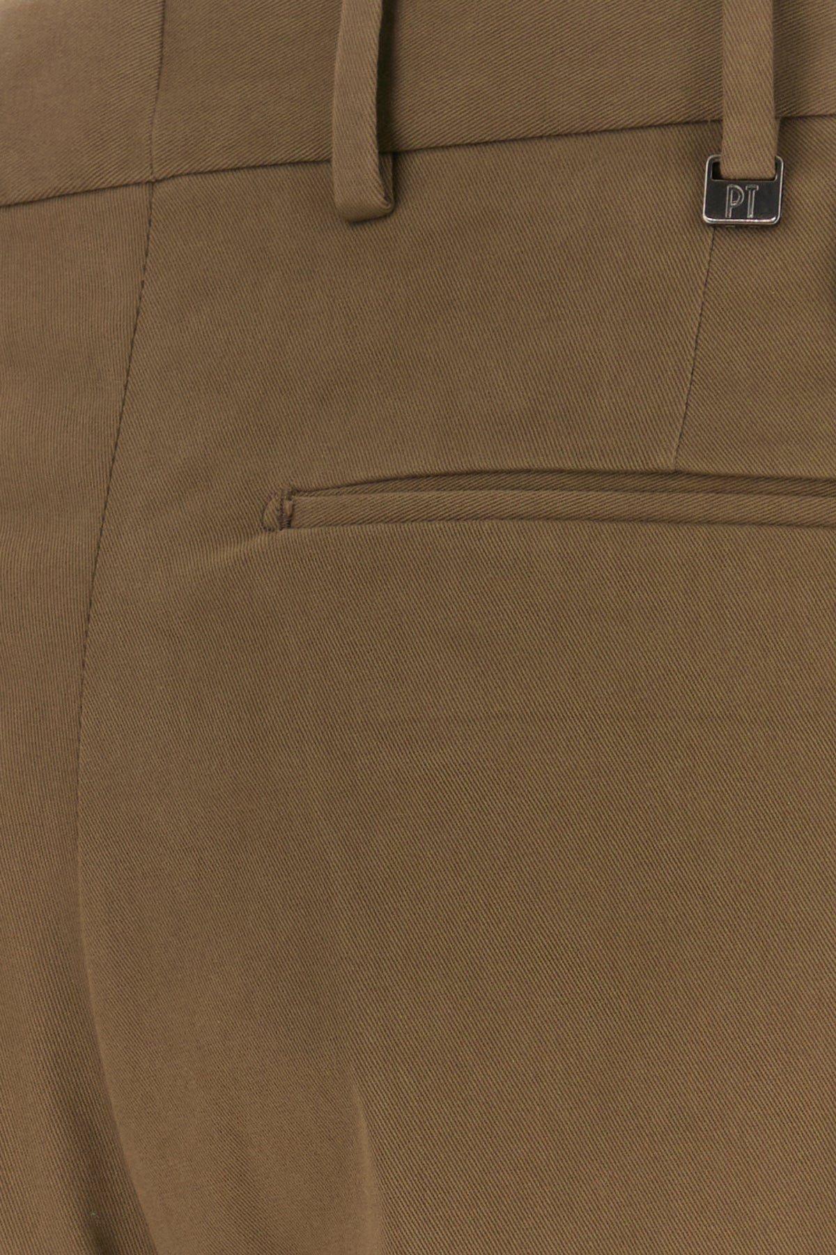 Pant realized in stretch cotton characterized by central ironed pleats.