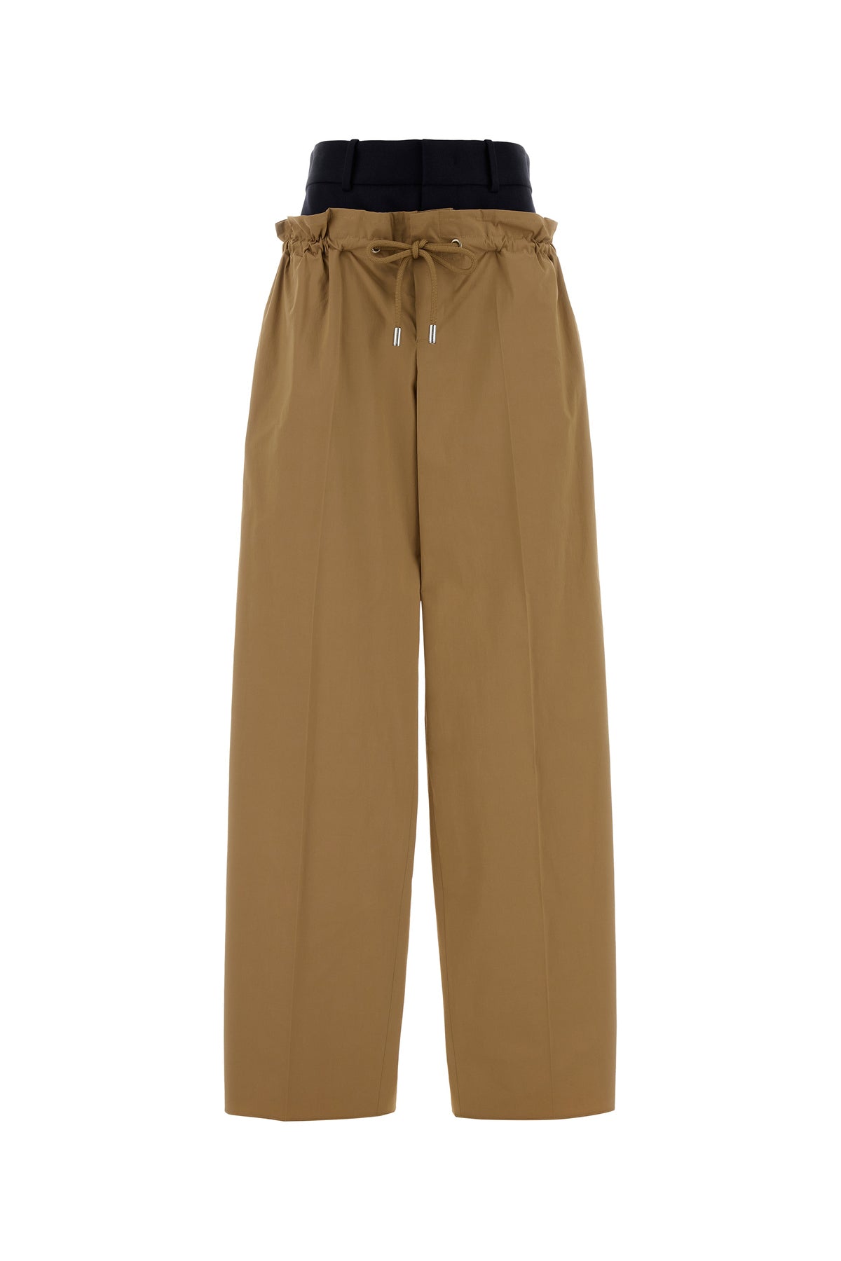 Pant realized in stretch cotton poplin with contrasting wool insert at the top.