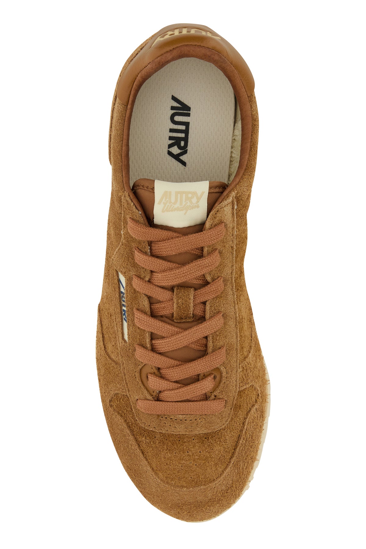 Sneakers realized in suede characterized by laminated printed logo on the contrasting heel enriched by logoed label on the side.