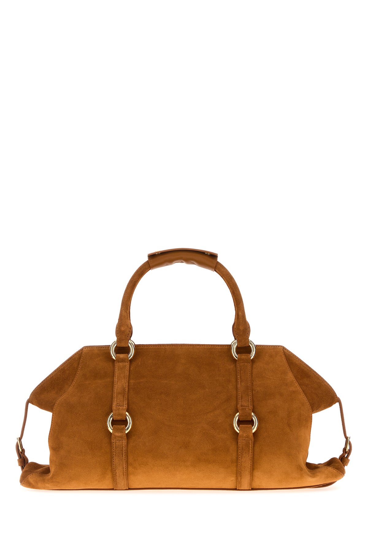 Handbag realized in calf suede characterized by laminated McQueen print at the front enriched by Harness straps.