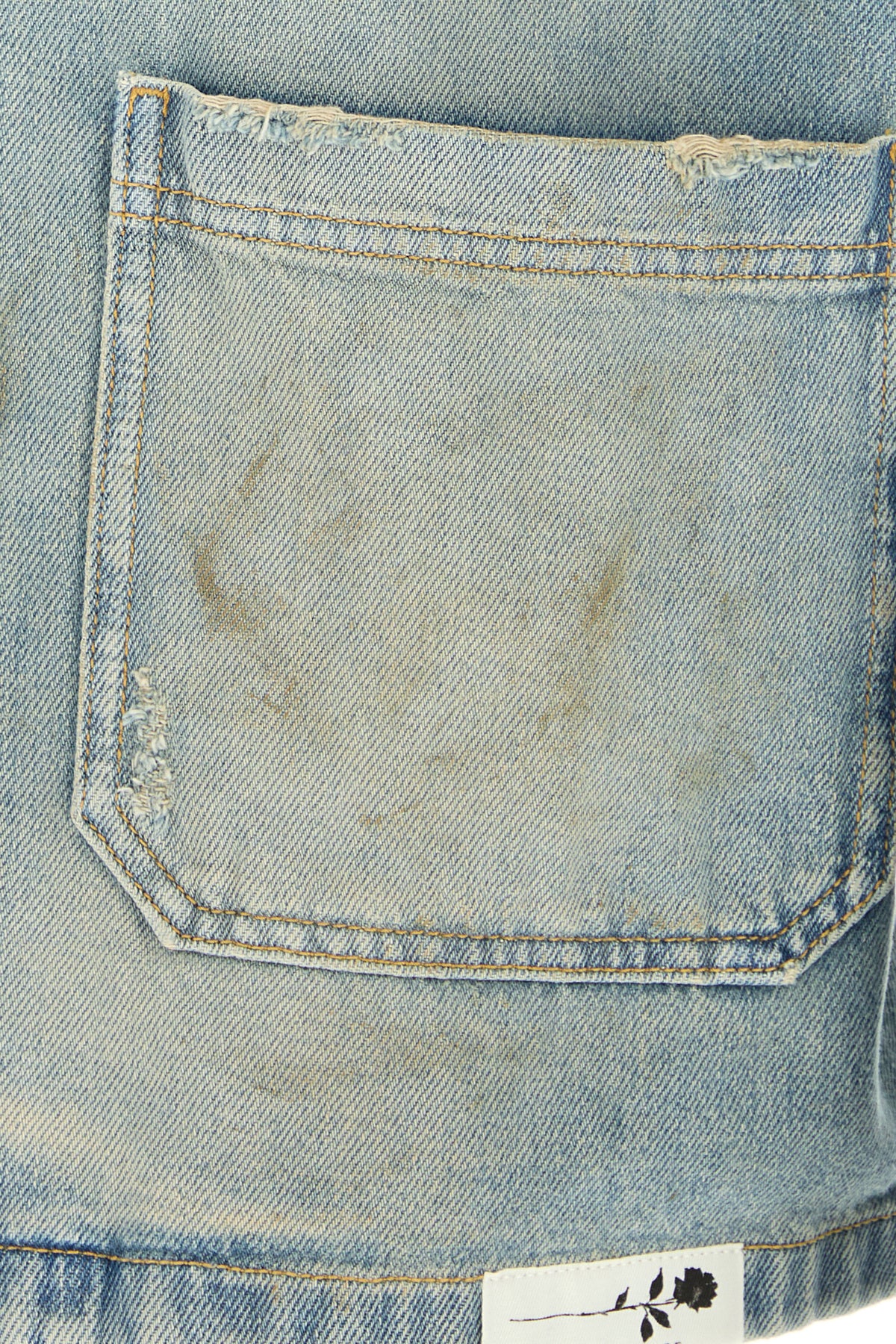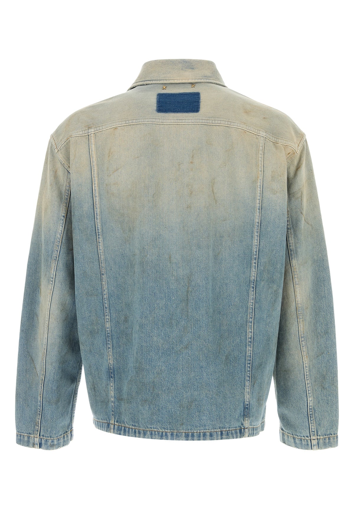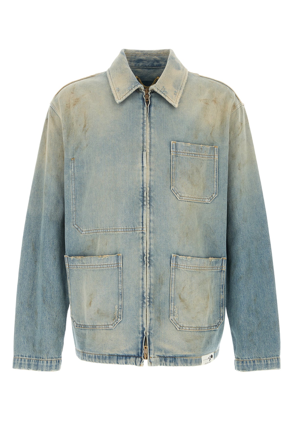 Jacket realized in stonewashed and distressed pure cotton characterized by intentional dirties.