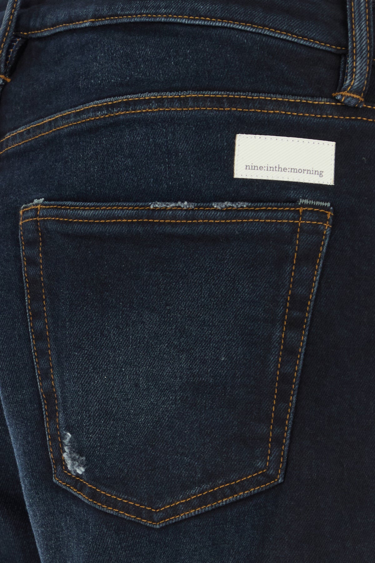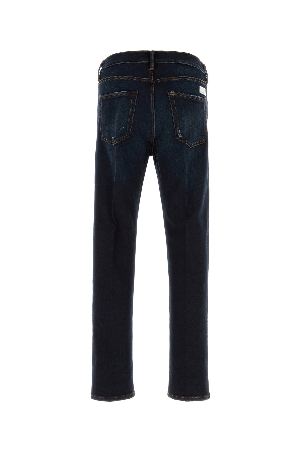 Jeans realized in stonewashed and distressed pure cotton denim enriched by contrasting logoed label at the back.