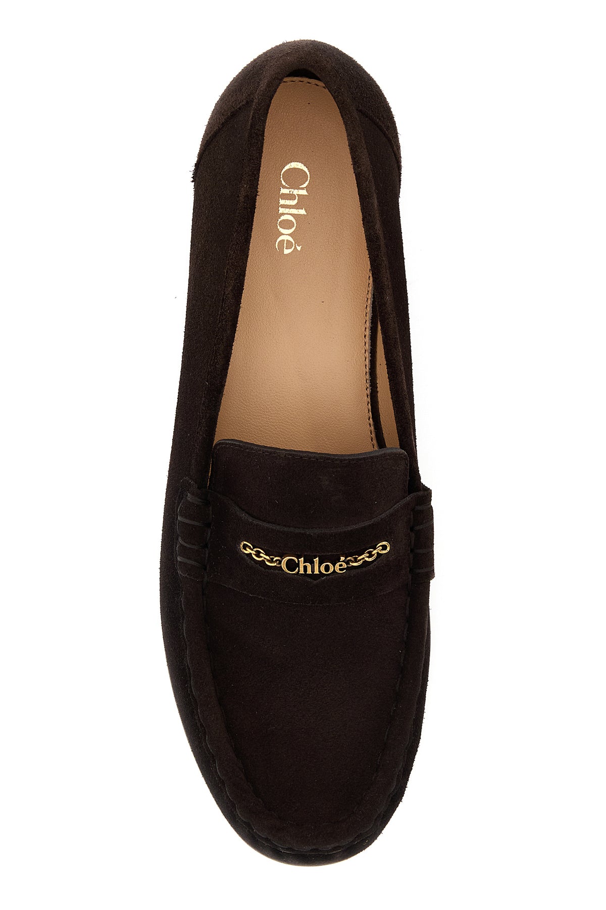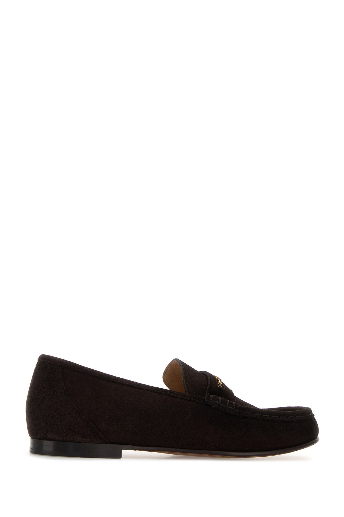 Loafers realized in calf suede enriched by metal lettering logo on the vamp.