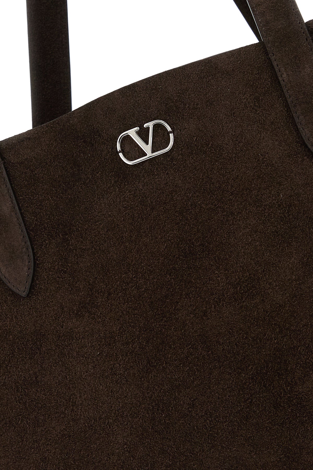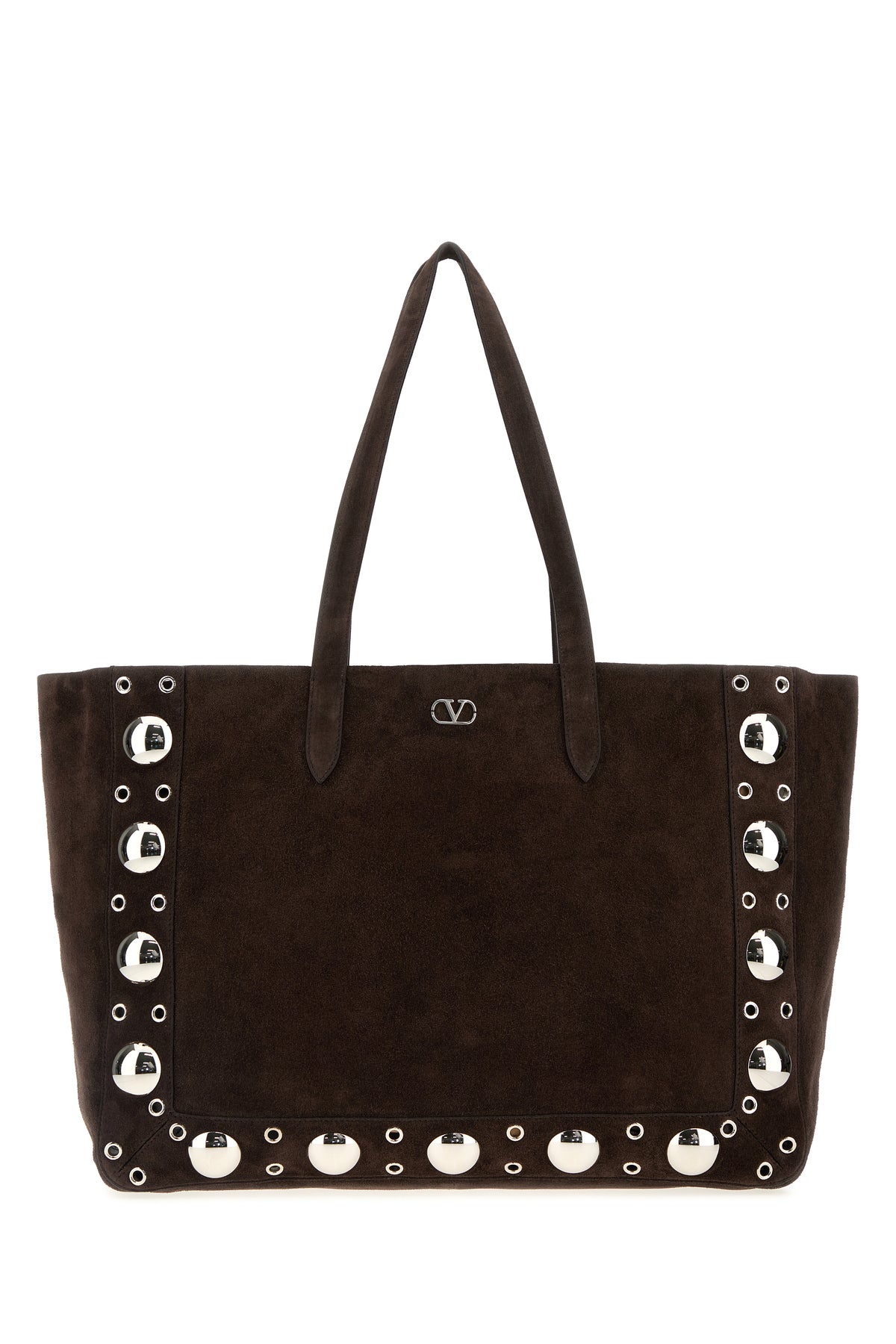 Shopping bag realized in suede enriched by Vlogo Signature metal detail at the front and metal studs on the trimmings.