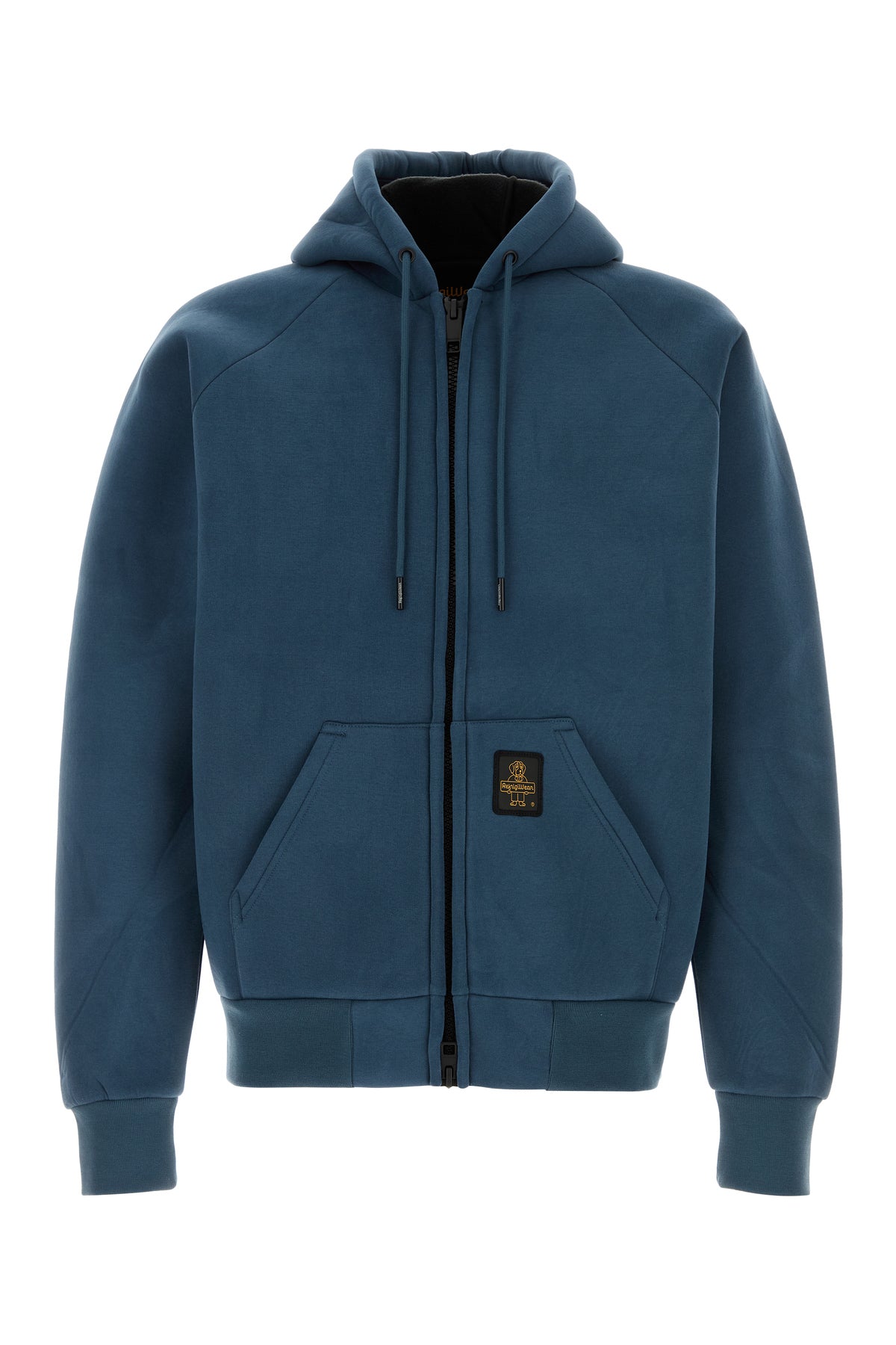 Sweatshirt realized in cotton blend enriched by contrasting logoed label on the chest.