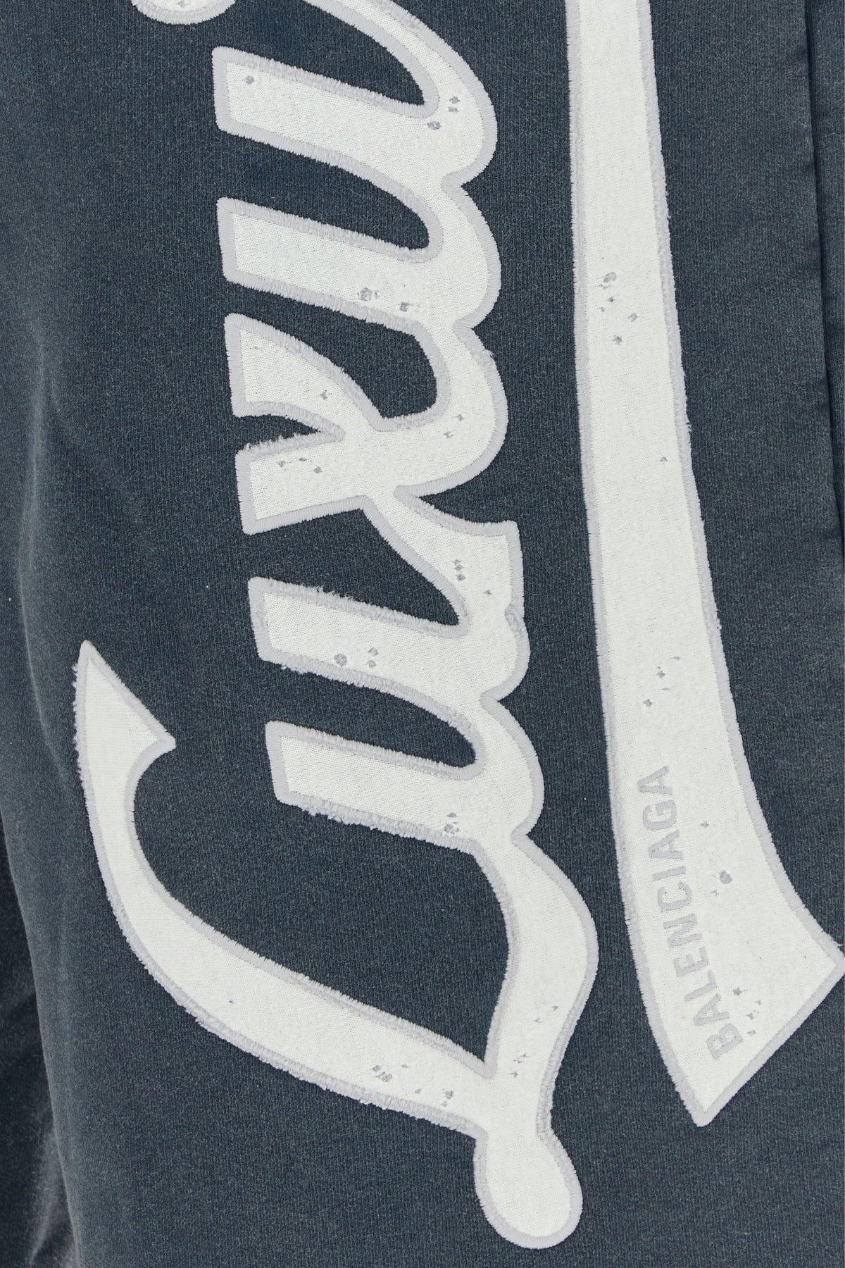 Joggers realized in pure cotton denim enriched by logoed patch at the front.