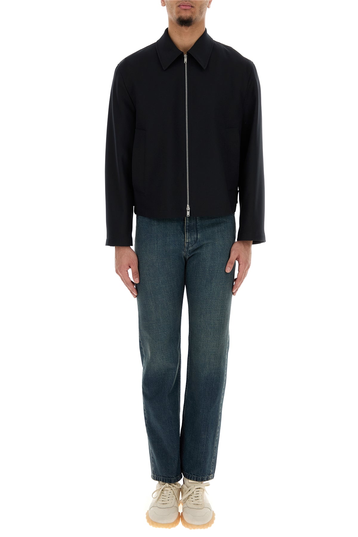- Concealed zip and a single visible button closure