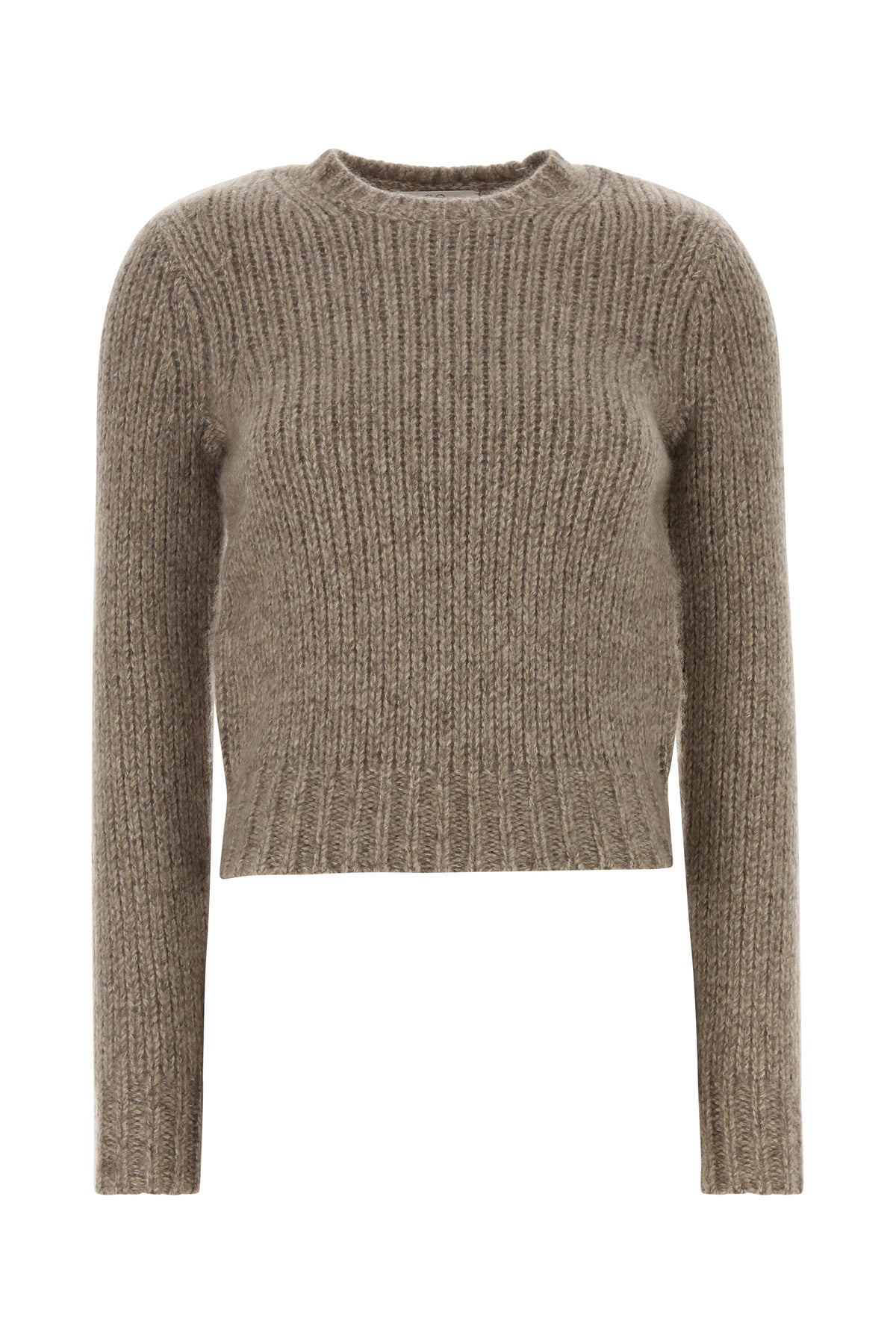 - Ribbed crew-neck, cuffs and hemline