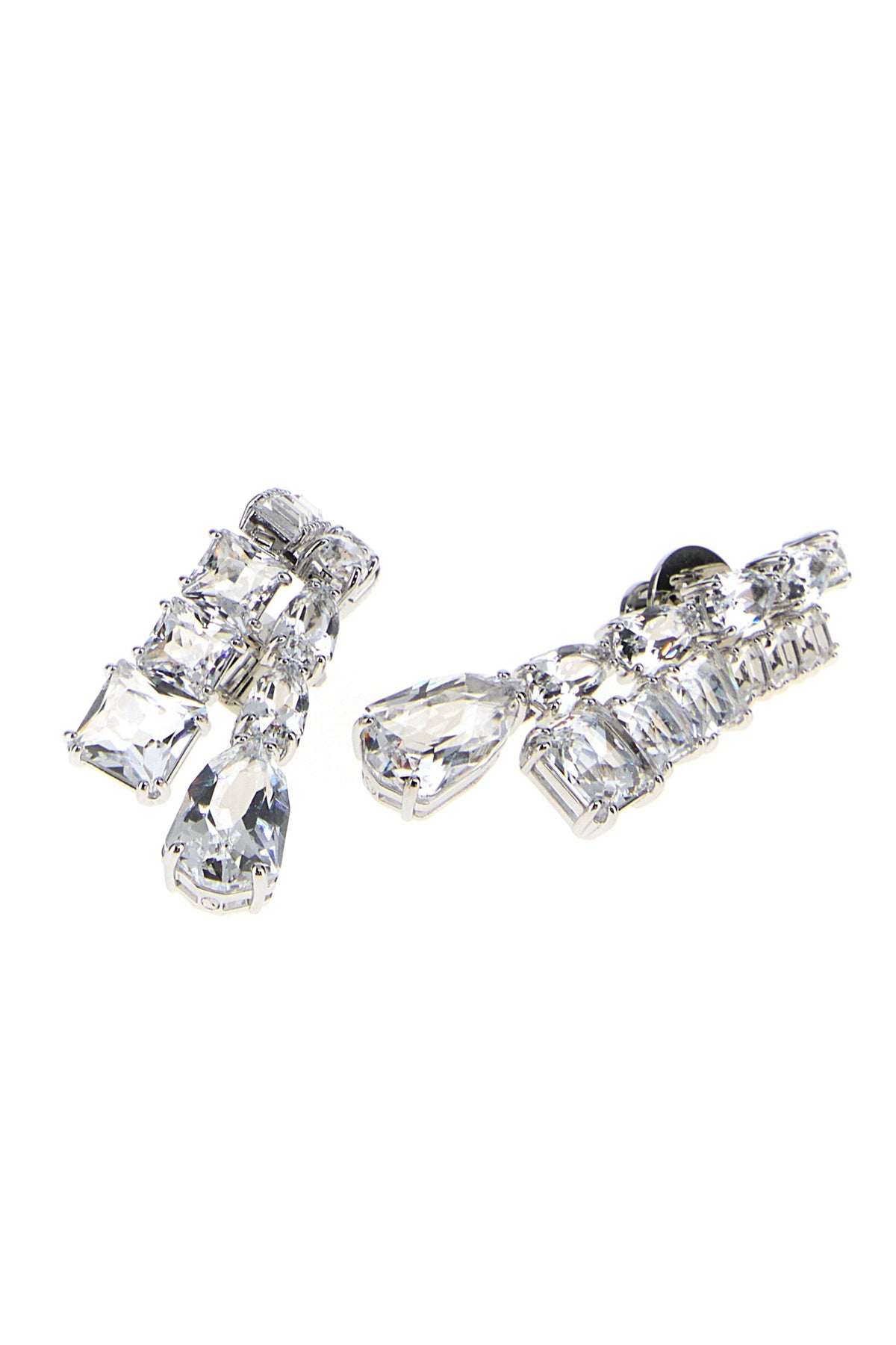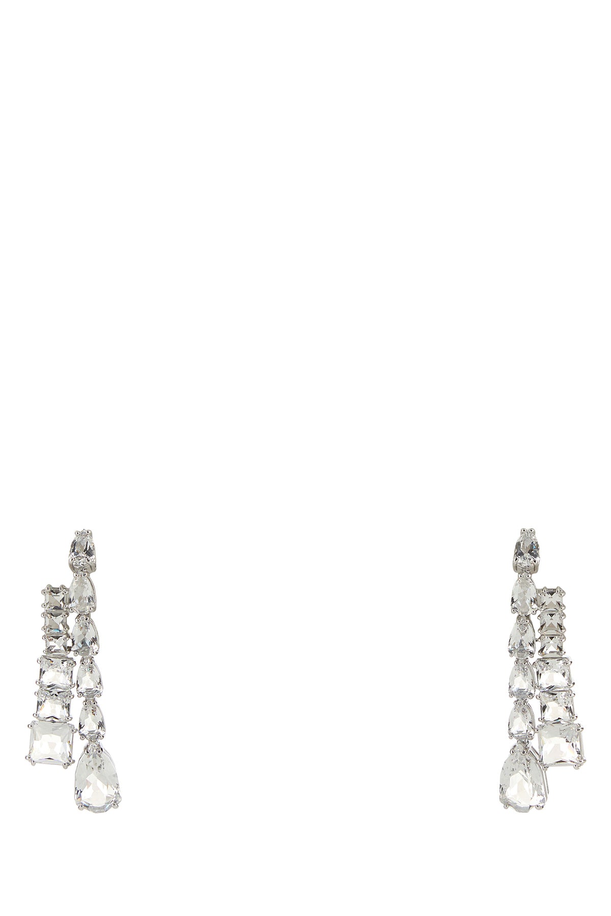 Earrings realized in silver-tone pleated meal enriched by rhinestones.