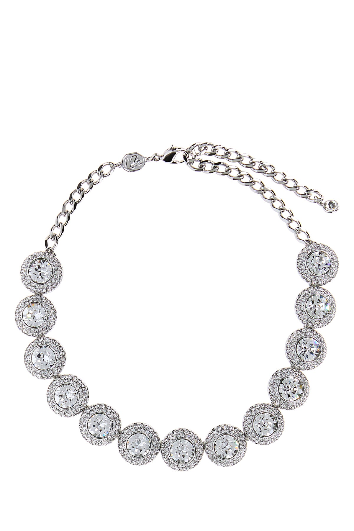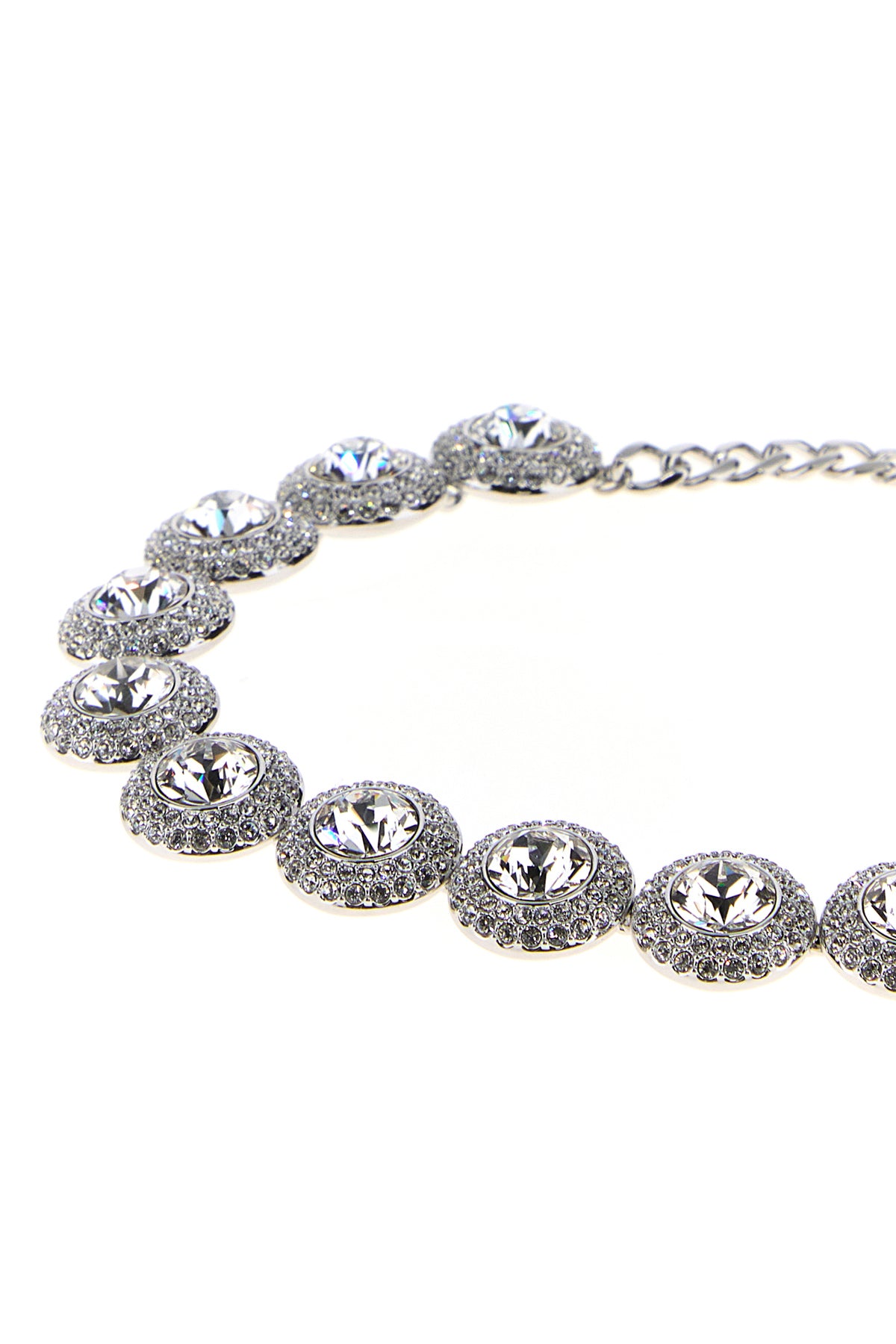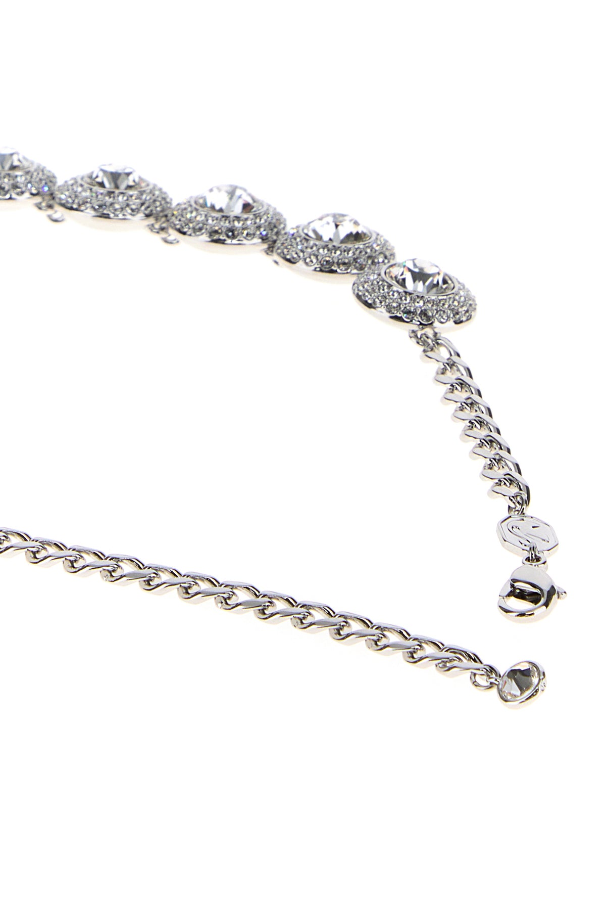 Necklace realized in silver-tone pleated metal enriched by rhinestones.
