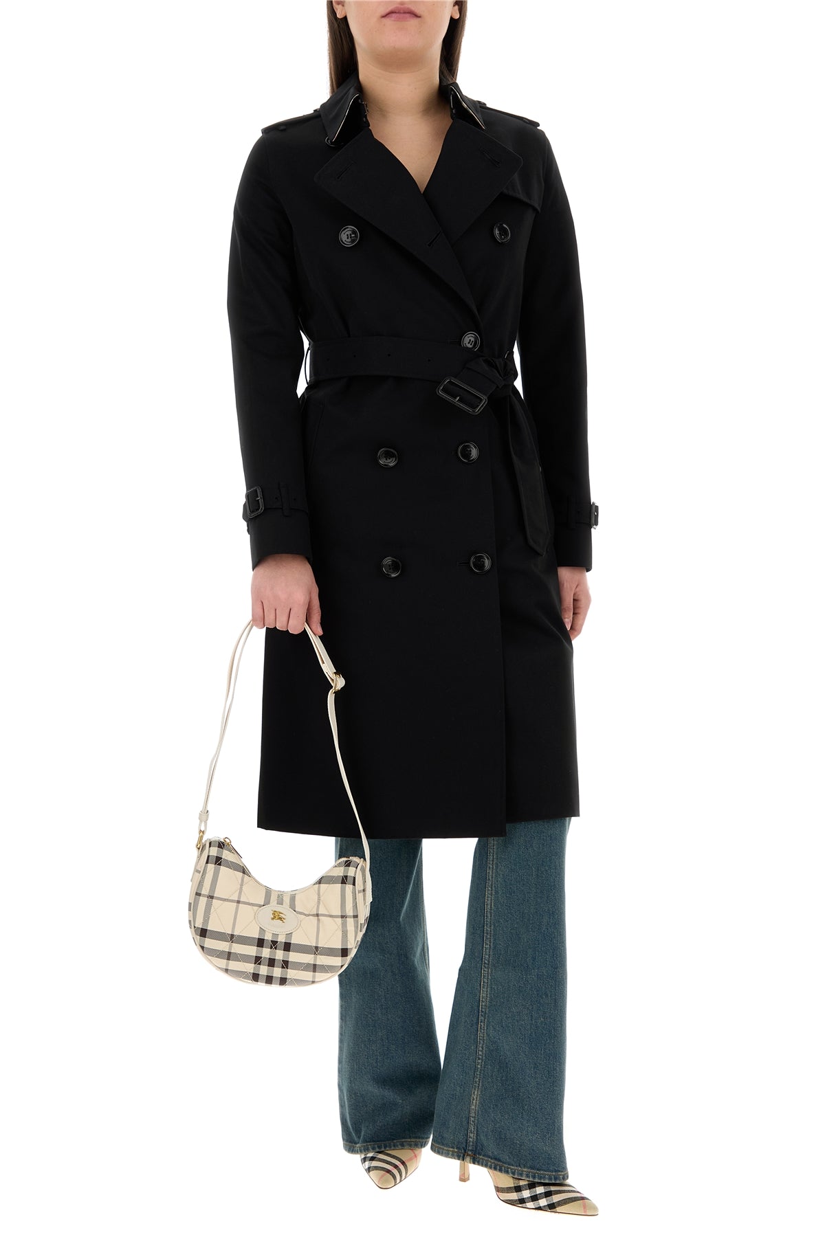 Crossbody bag realized in fabric characterized by Burberry Check embroidery on the entire surface enriched by Equestrian Knight patch at the front.