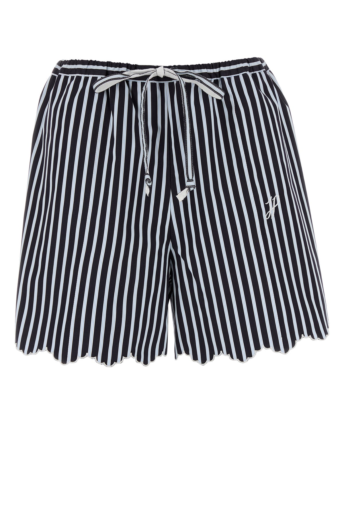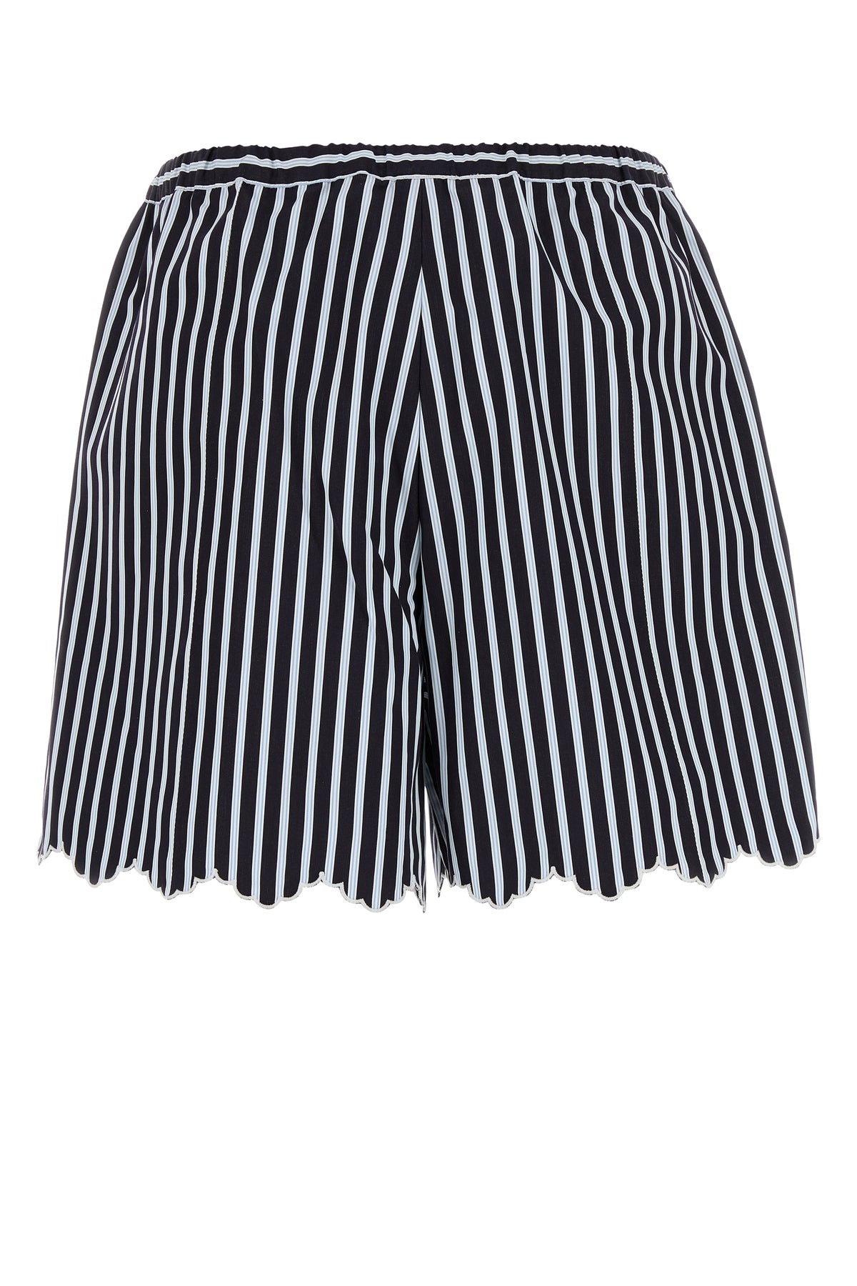 Shorts realized in pure cotton characterized by striped embroidery on the entire surface.
