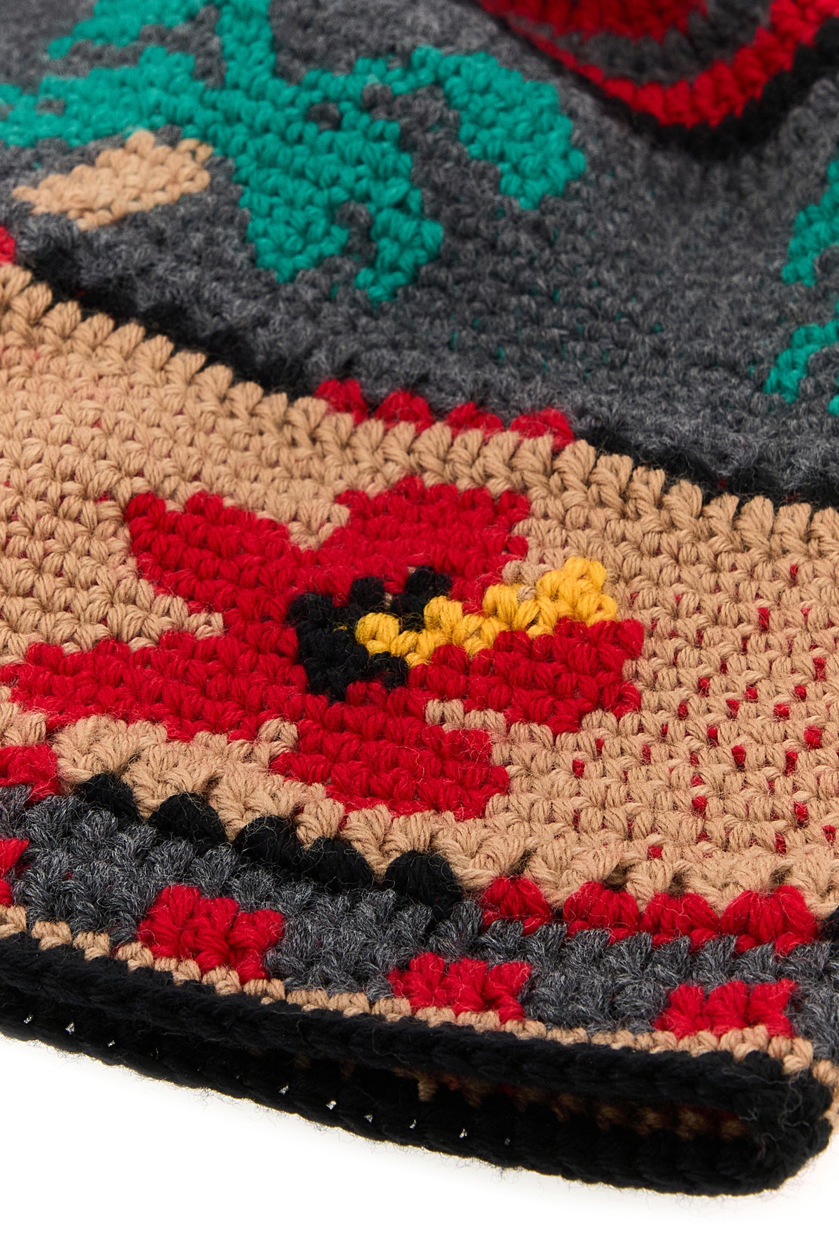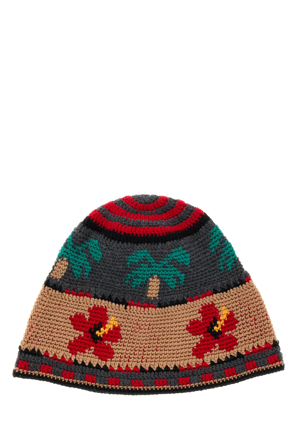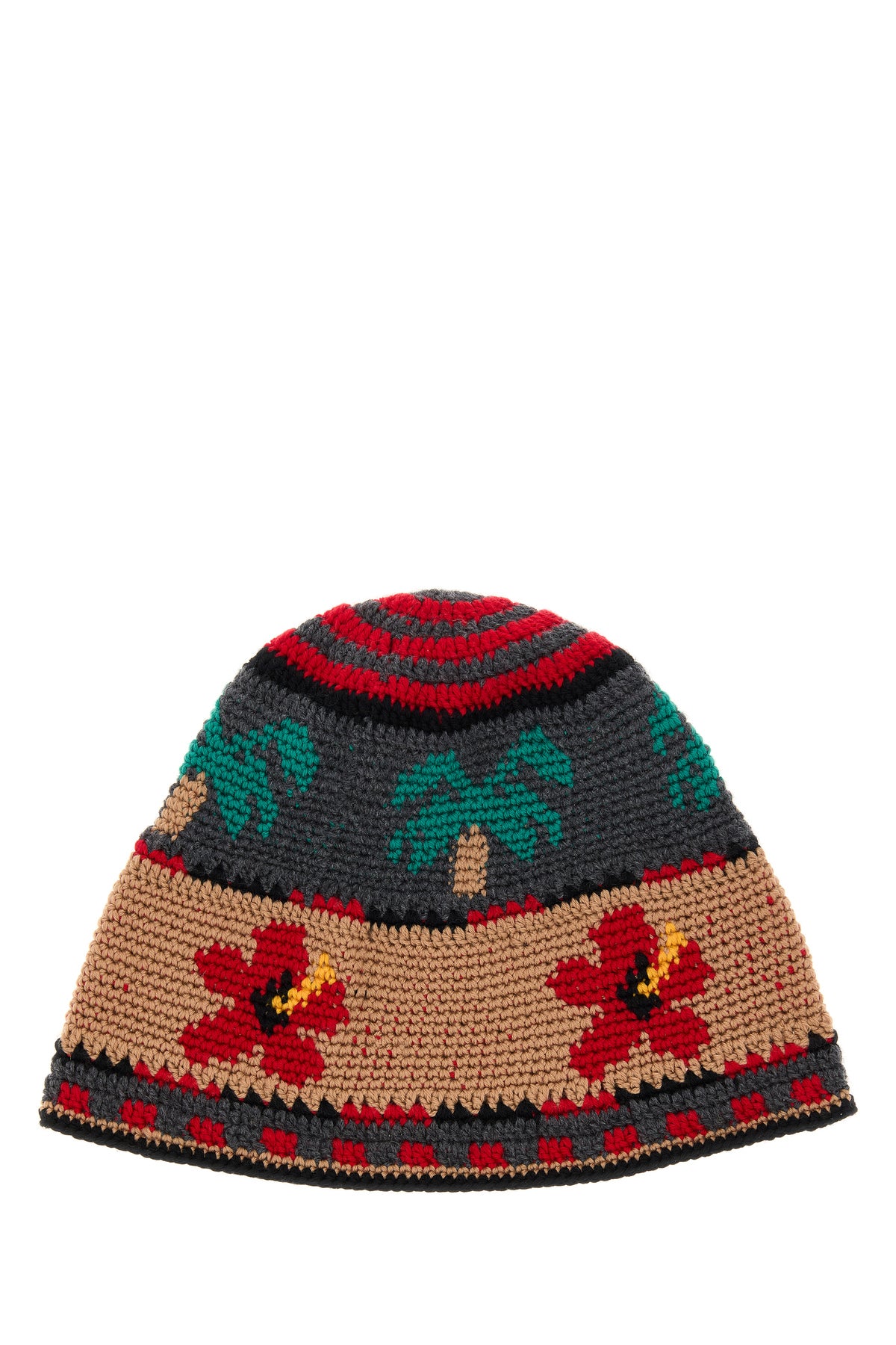 Hat realized in pure wool characterized by Hibiscus embroidery on the entire surface.