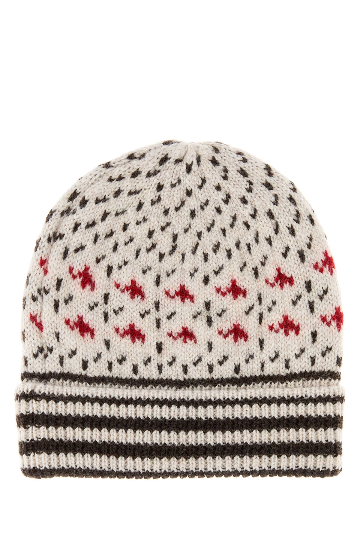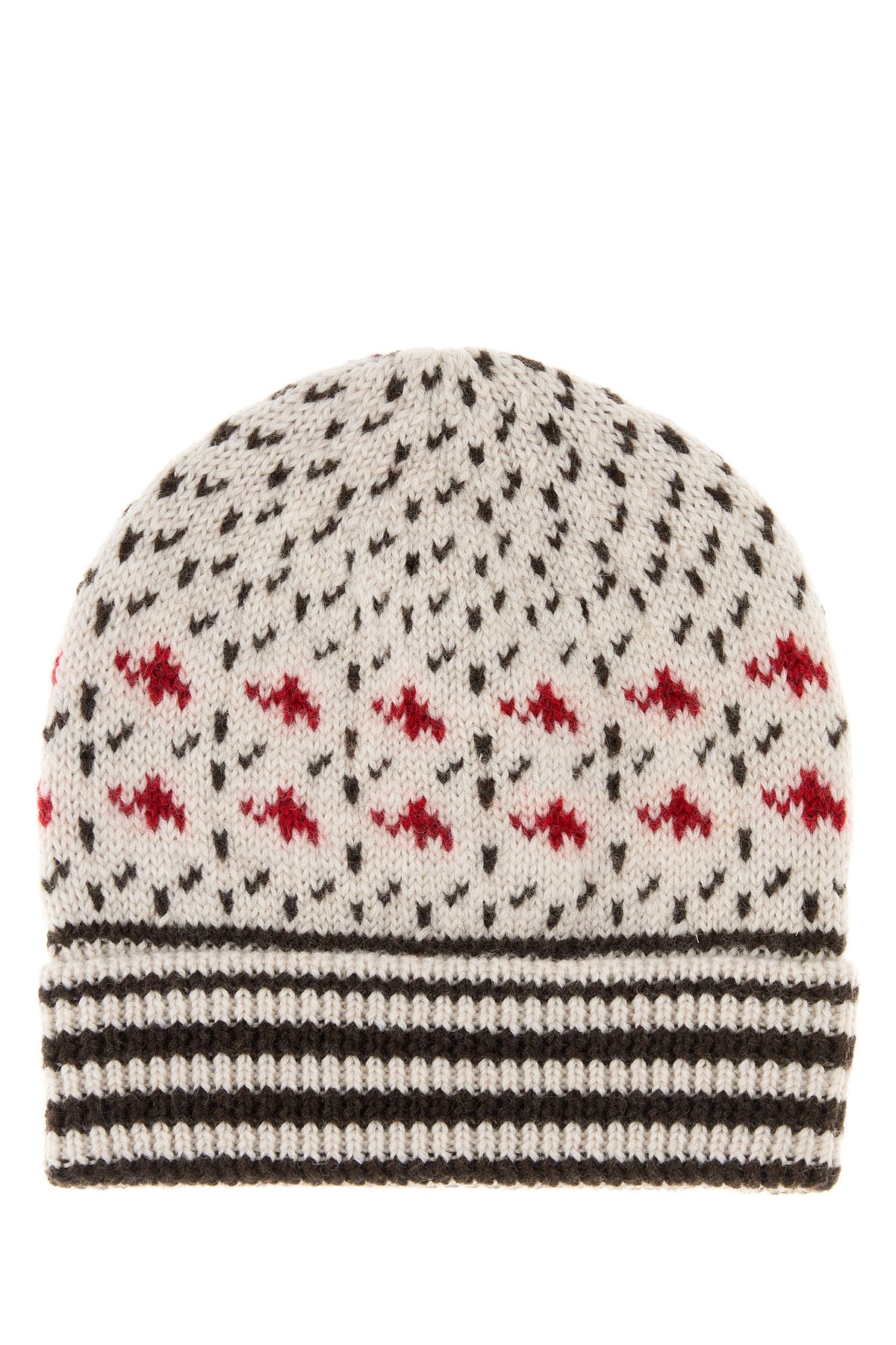 Beanie hat created in collaboration with Cabourn realized in pure wool characterized by peculiar embroidery on the entire surface.
