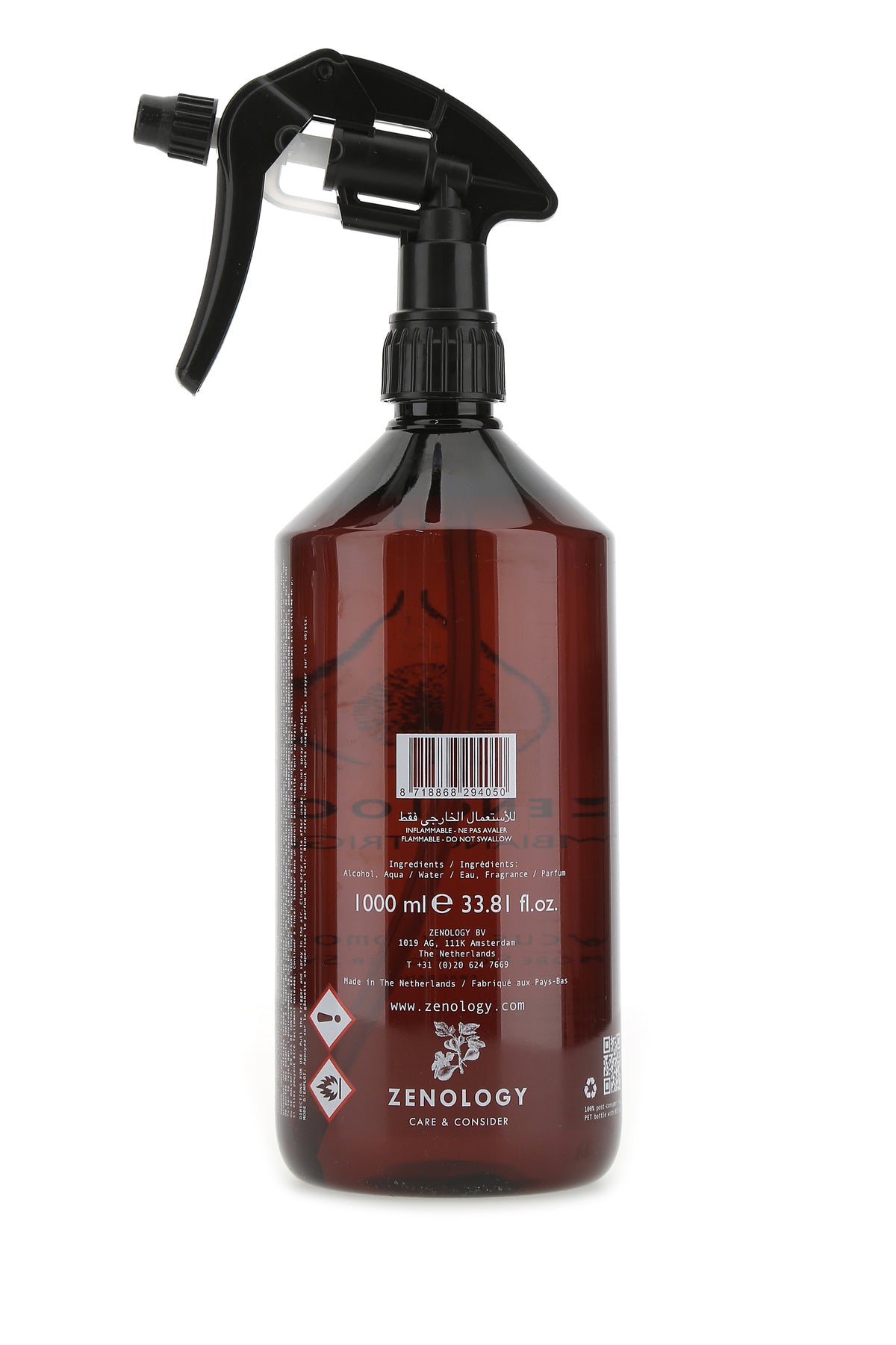 Room spray characterized by recycled PET bottle with logoed print at the front.
