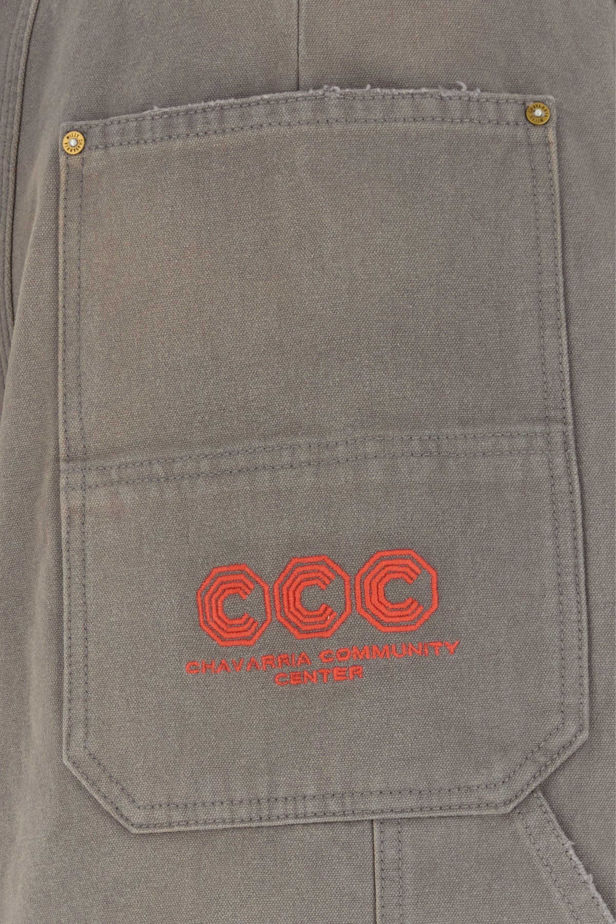 Bermuda shorts realized in vintage-effect pure cotton denim with distressed trimmings characterized by logoed embroidery at the back.