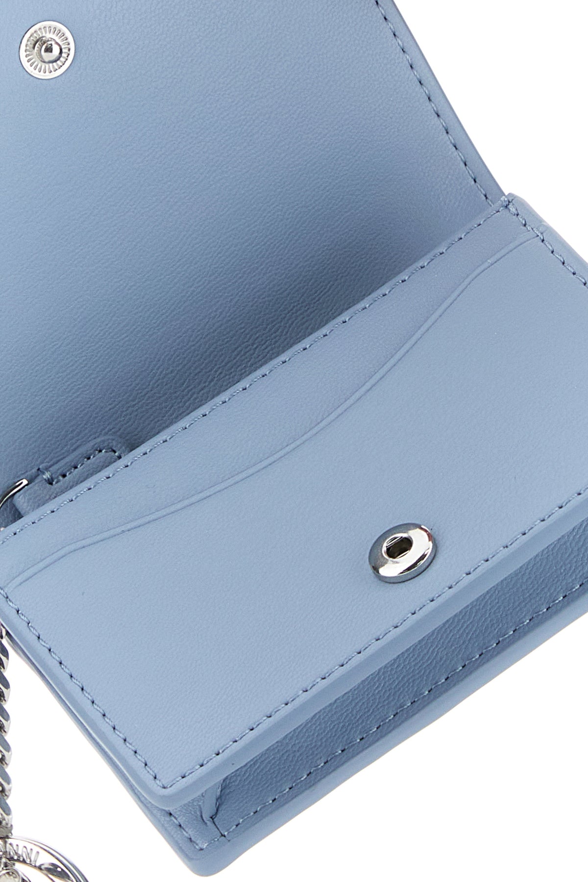 Coin purse realized in leather characterized by peculiar logoed print at the front and embossed logo at the back enriched by logoed patch at the front.