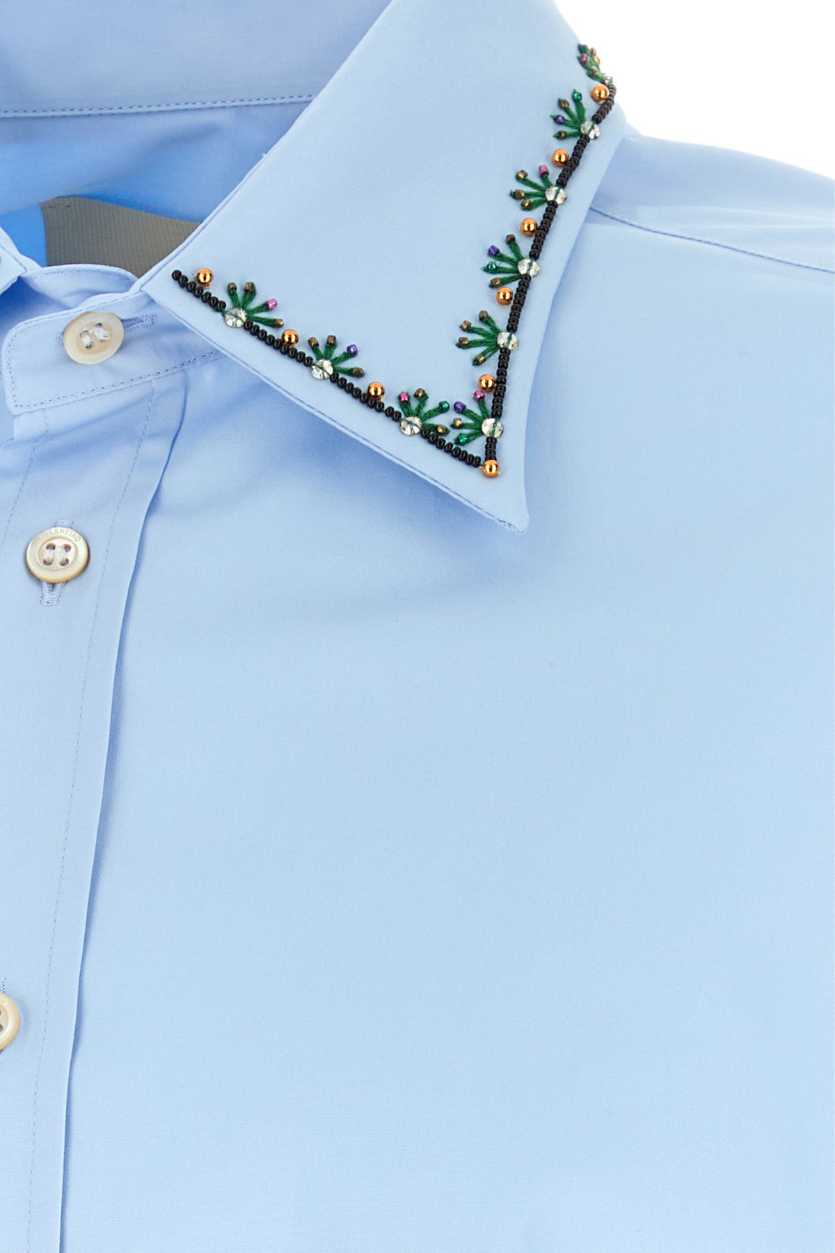 Shirt realized in pure cotton poplin enriched by beaded floral embellishment on the collar.