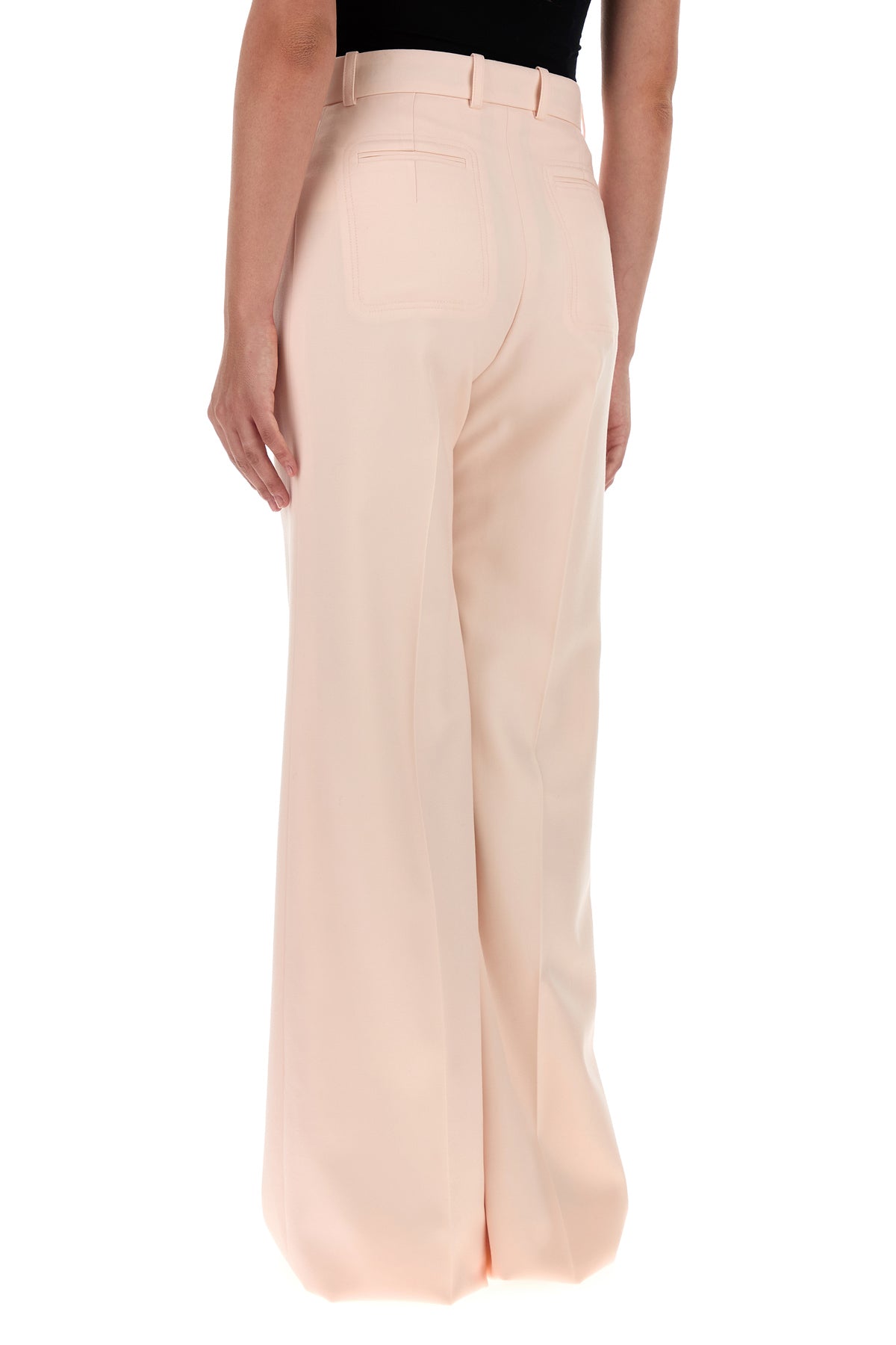 Flared leg pant realized in pure virgin wool characterized by central ironed pleats.